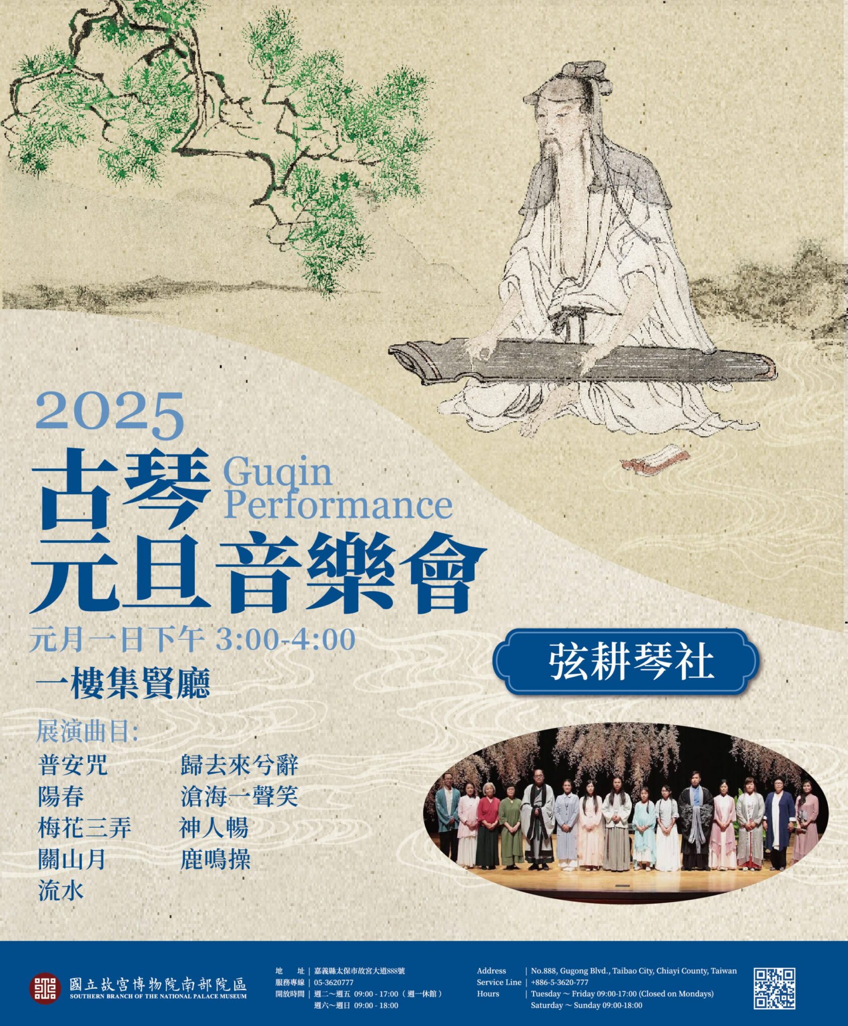 - 2025年1月1日(星期三)15:00-16:00 表演 | 談琴說藝-古琴音樂會(弦耕琴社)