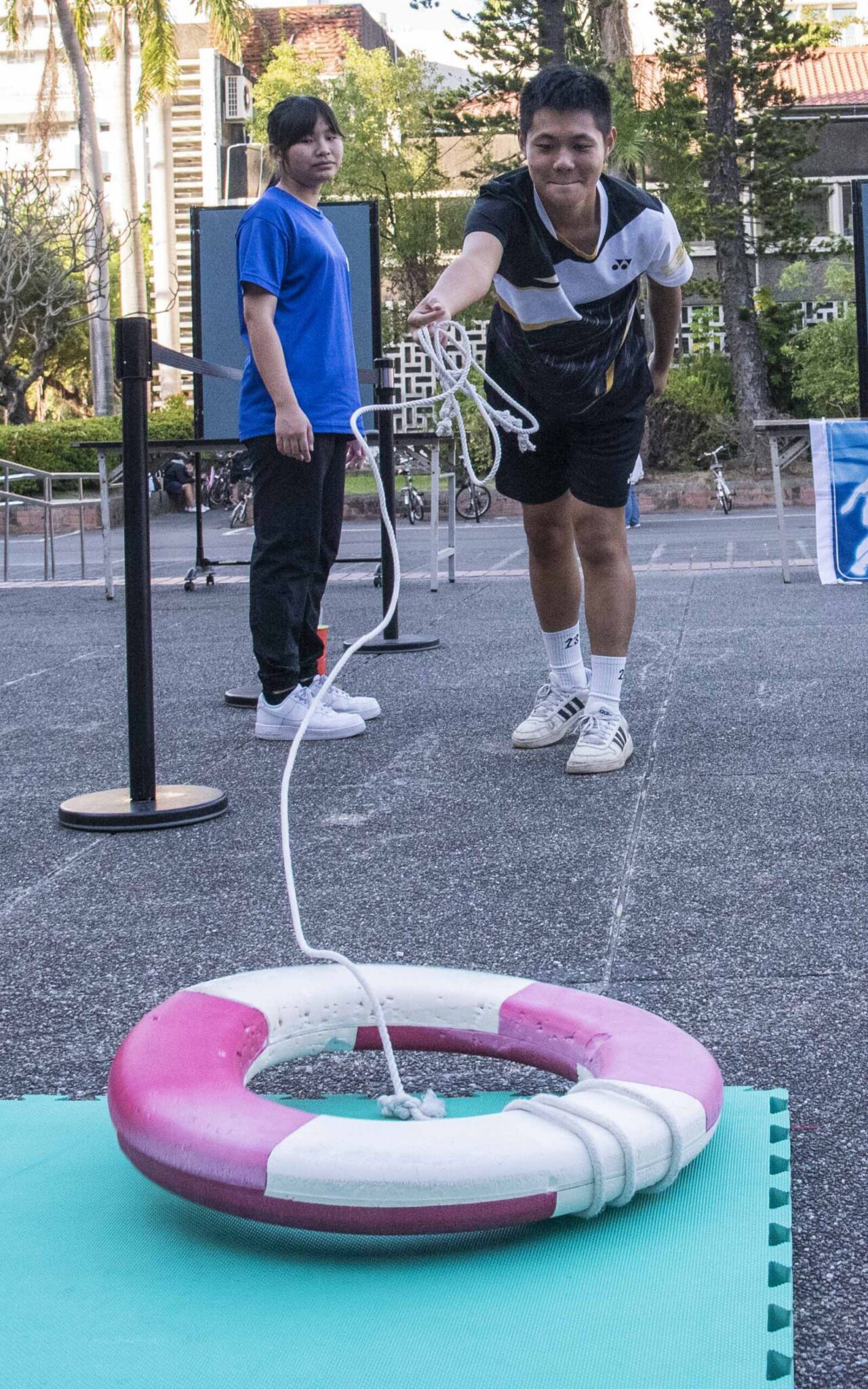 嘉南藥理大學日前攜手校內水上活動社、學生會、藥學系、擊劍社、現代五項社及運動管理系,在校內及臺南大甲國小、文賢國小、成功國小及臺東大鳥國小舉辦「浪劍激鬥,勇者水上大冒險」活動。活動總召水上活動社社長廖偵羽表示,根據消防署統計,每年有超過500人因溺水失去生命,這個數字令人警惕。因此,為了讓水域安全意識能夠從小扎根,並將安全知識推廣至偏鄉,特別選在寒假前夕舉辦這場活動。
