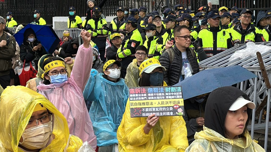 而場外台灣公民陣線、台灣經濟民主連合、等5個民間團體以及5個政黨合辦號召青鳥公民運動,上午在立法院濟南路集結,並以「冬季青鳥」為主題,要求「回復國會民主,退回三大惡法」,標提出「回復國會合議秩序」、「退回三大惡法」、「討伐傅崐萁」、「警告藍白黨人」、「賴總統出面協調」5大訴求。