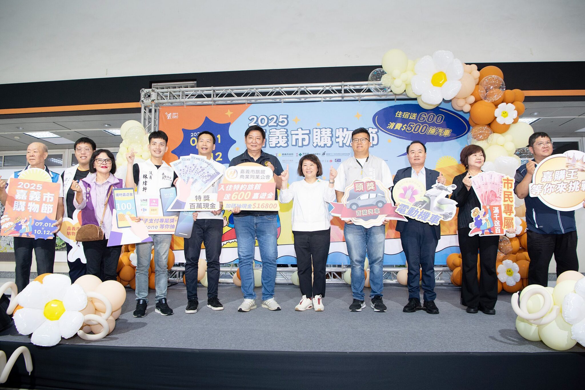 一年一度的「嘉義市購物節」將於7月1日至10月12日盛大登場!黃敏惠市長今(30)日在記者會上宣布今年活動機制全面升級,最大獎送百萬汽車、特獎送一百萬現金,來嘉住宿送600嘉遊金、再加碼專屬四重抽等各式好康,只要消費滿500元就有機會把大獎帶回家!期待升級好禮與自7月起一連串的精采活動以及中秋和國慶連假能帶動買氣,市府與民間攜手共創商機。