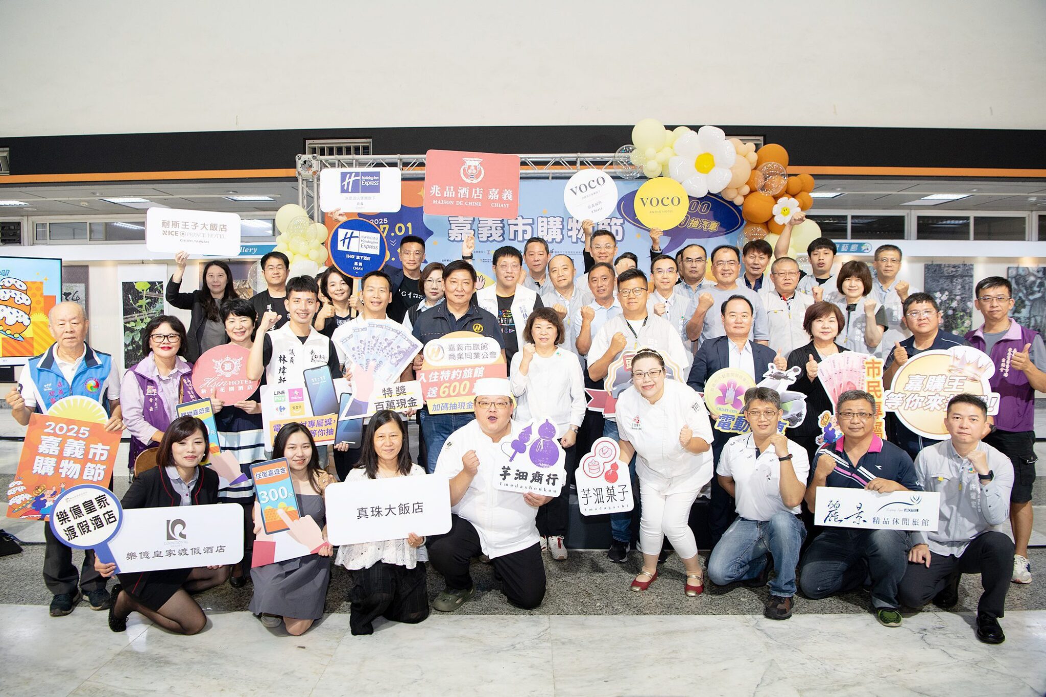田長沛也特別感謝「嘉義市不動產商業同業公會」連續5年支持嘉義市購物節並贊助電動機車,還有「嘉義市旅館商業同業公會」連續6年支持「住宿送600嘉遊金」活動,號召耐斯王子大飯店、樂億皇家渡假酒店、嘉義福容voco酒店、承億文旅、里亞行旅、新悦花園酒店、智選假日酒店、葉綠宿.漫漫回嘉、真珠大飯店等在地旅宿贊助飯店住宿券,鼓勵民眾來嘉旅行、刺激消費!感謝所有在地業者們全力投入資源與心力支持購物節,一同振興經濟!
