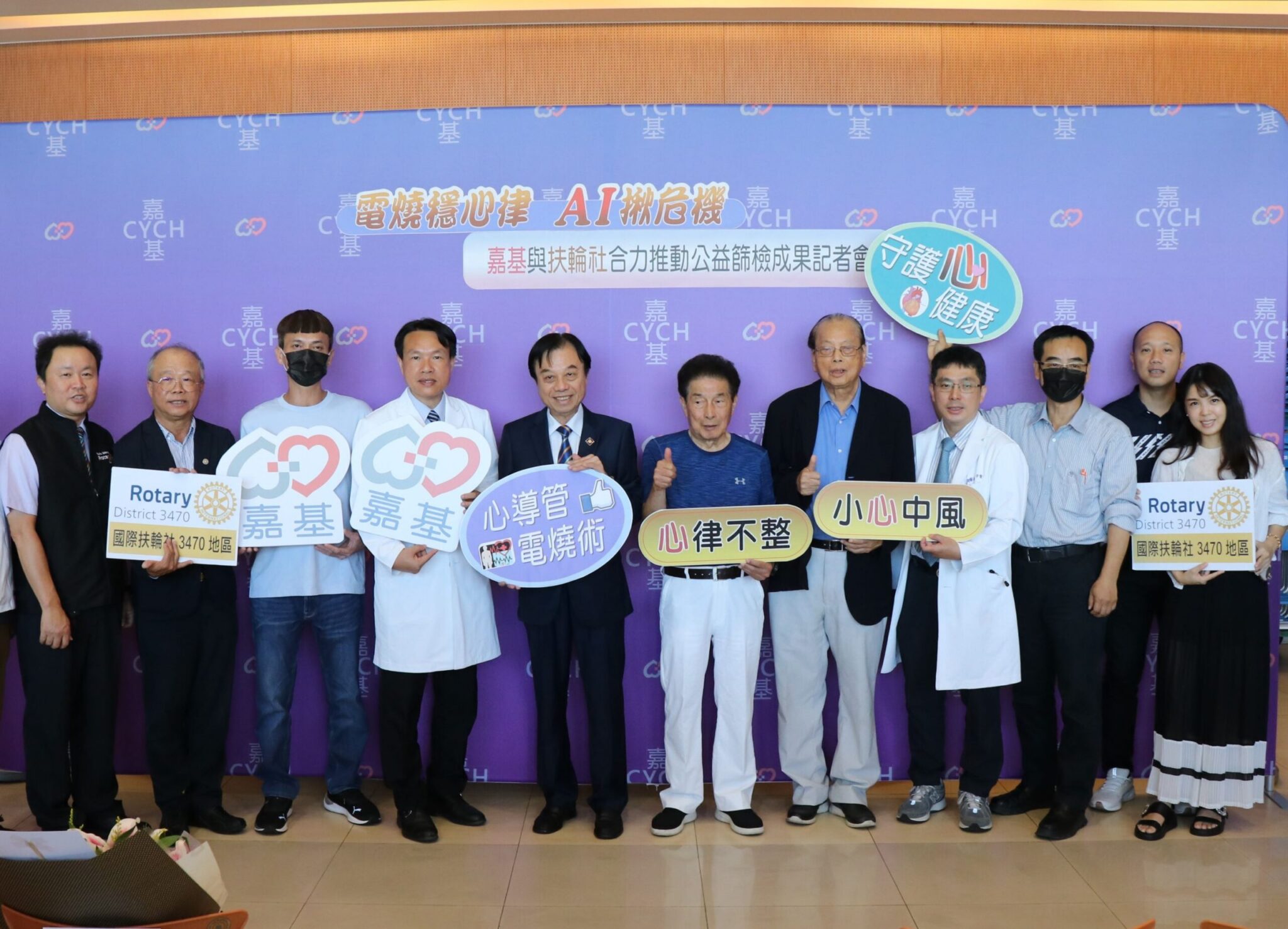 記者會中分享三起典型案例,其中2例皆於扶輪社社區篩檢活動中,檢出有心律異常狀況經建議就醫,謝先生,40多歲,長期苦於胸悶心跳慢,無法正常運動,到醫院就診經檢查發現有多發性心室早期收縮,接受專業醫師建議進行電燒術後,困擾多年的不適症狀終得解脫;章先生,50多歲,原無明顯不適,偶而感到胸悶,參加預防篩檢活動中被發現心律異常,經轉介至嘉基,由專業醫師確診為陣發性心房顫動,為中風高危險群,經評估建議最終透過電燒手術成功治療,他感動表示,「沒想到一場預防篩檢活動救了我」。這不僅驗證了AI科技的精準與可靠,也展現心導管電燒術的高度療效。