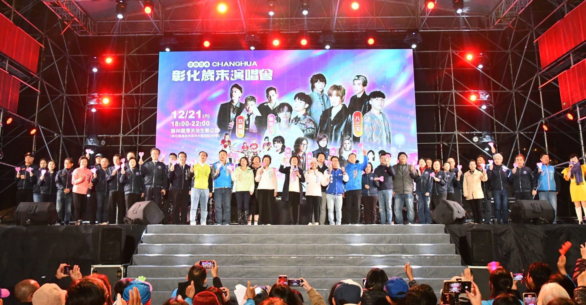 「2024彰化歲末演唱會21日晚間在員林圓林園滯洪池生態公園歡樂登場,縣長王惠美、各級民代與會,老中青三代巨星群集,接力登場,現場陸續湧入近三萬人次,滿滿人潮,王惠美表示,歲末是感恩的時節,感謝過去一年,縣府團隊的用心努力共同推動縣政,感謝在議長謝典林及所有議員們,讓縣政推動順利,更要感謝我們所有鄉親的支持,才能夠讓彰化縣不斷向前,感恩過去一年,大家共同努力打拚,一起迎接2025新的一年!