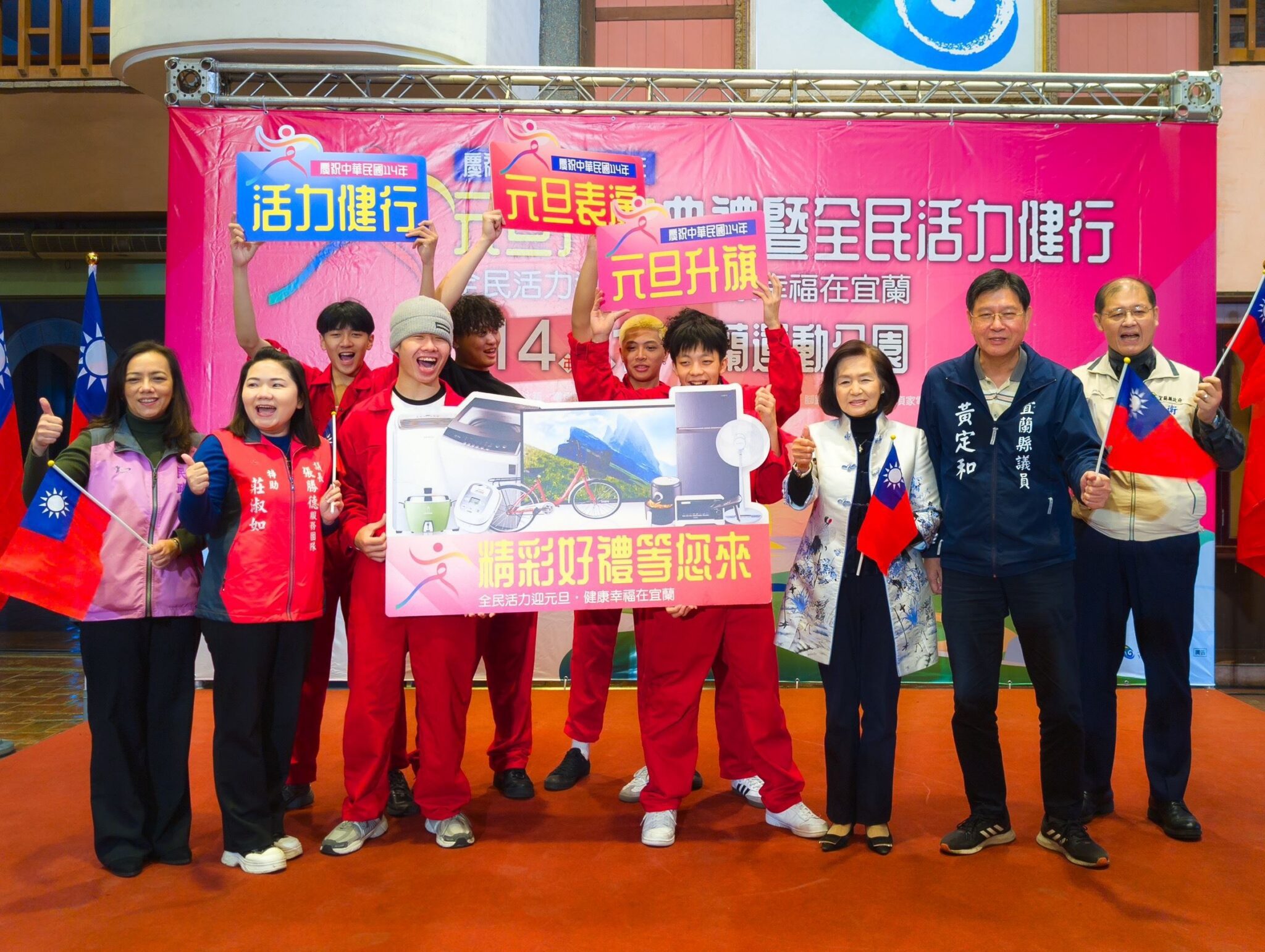 宜蘭縣政府今(23)日上午在縣府縣民大廳舉辦「慶祝中華民國114年元旦升旗典禮暨全民活力健行活動」記者會,縣長林姿妙邀請鄉親一同慶祝114年中華民國新年快樂,同時一起參與活力操及為健康而走健行活動,建構活力健康的樂活宜蘭。