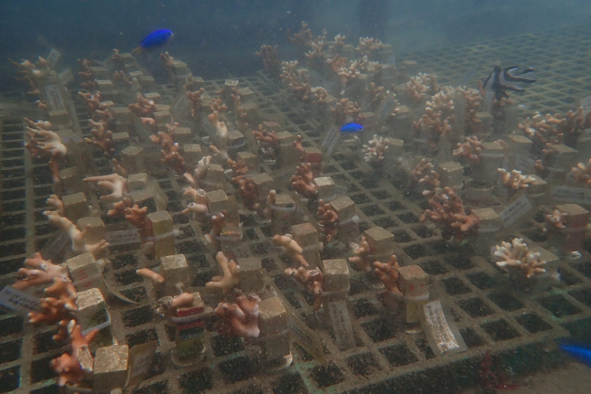 農業局說,新北市為全國首創辦理「山海造林-生物多樣性復育」計畫,從事珊瑚復育,結合國立台灣海洋大學及台灣山海天使協會等,以貢寮海洋資源復育園區為基地,自108年起於卯澳灣海域種植珊瑚,至今廣植超過3,000株,已觀察到移植的珊瑚幼苗由原先的5-6公分成長至30-40公分。同時在萬里野柳保育區辦理軟絲復育,以竹叢礁打造軟絲產房;於全國第一個栽培漁業示範區的貢寮卯澳灣,培育並放流如九孔、花枝、海膽、黑毛等在地物種共計達77.6萬尾;並持續於淡水河口放流台灣原生種文蛤累積達800萬粒幼苗。在貢寮美艷山漁港,全國首創推動栽培漁業中間育成基地,在漁港內置放魚苗並蓄養至箱網再進行放流,可提升魚苗放流存活率達95%。