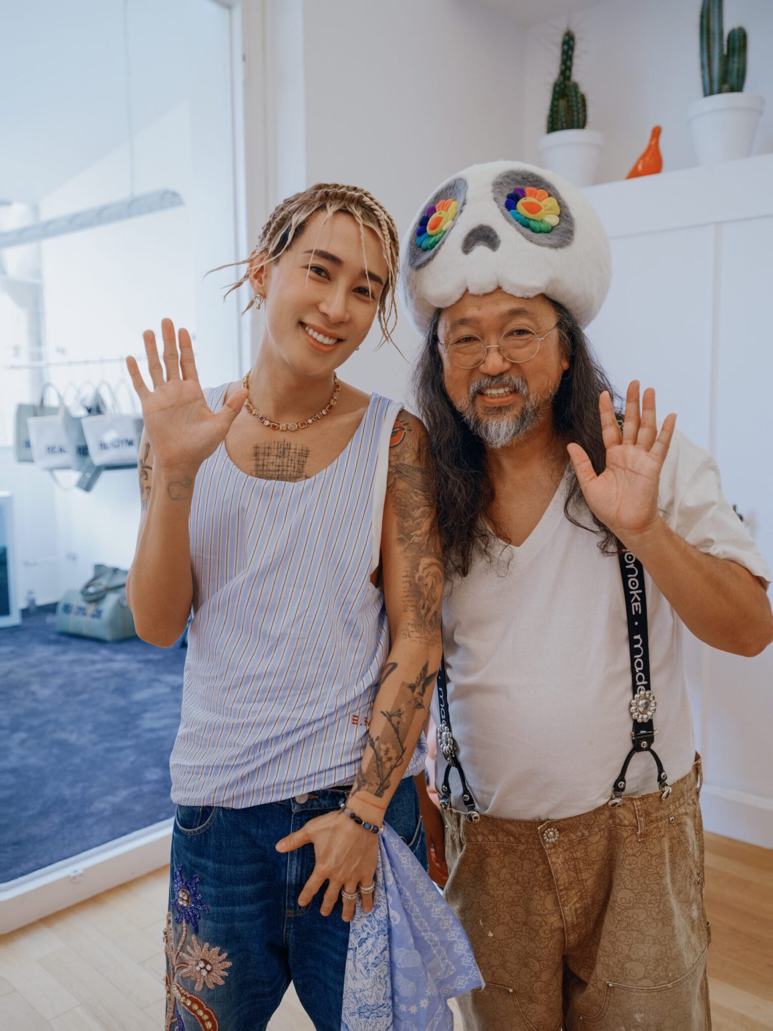 馬天佑(左)參加米蘭時裝周與村上隆Murakami Takashi(右)合影相見歡 照片提供:Fame Glory