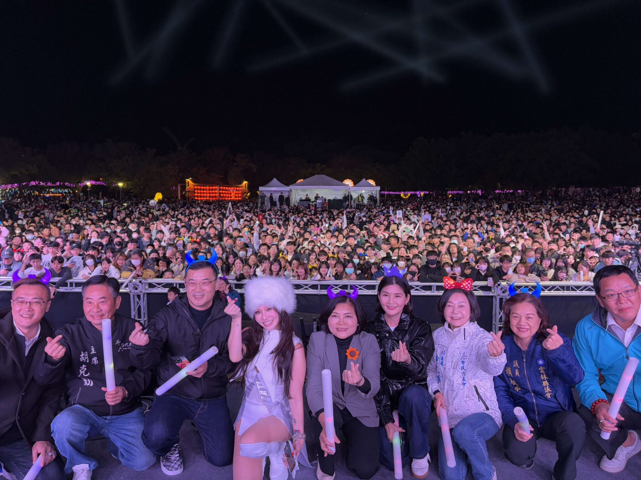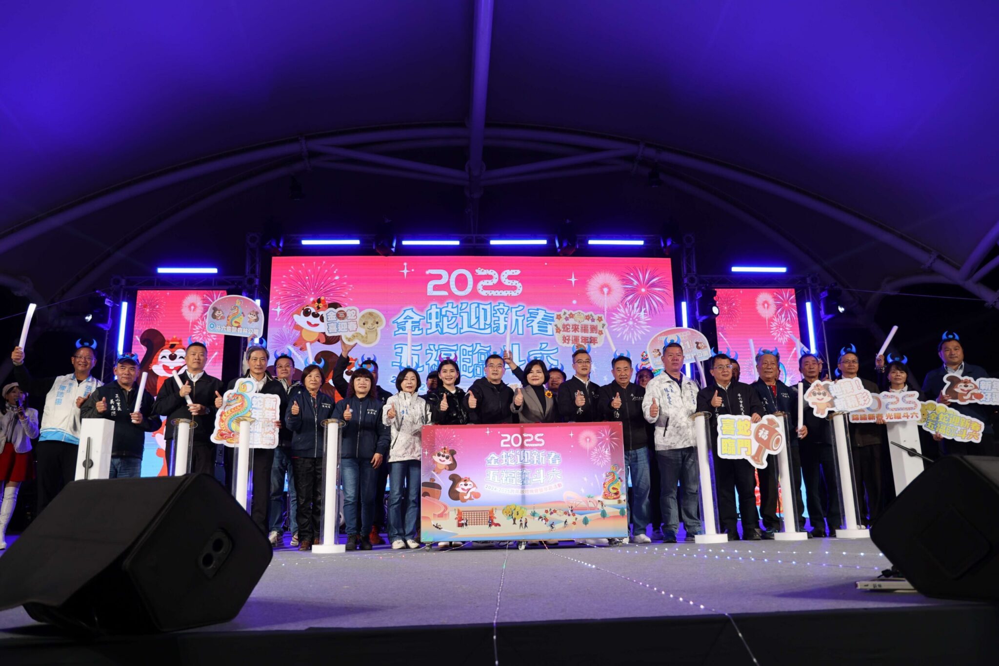 2024-2025斗六跨年啟燈晚會12/31日熱鬧登場,縣長張麗善率縣府團隊出席,與斗六市長林聖爵、縣議員陳永修、賴淑娞、斗六市民代表會主席胡克勤、副主席黃尤美及各代表、里長共同為蛇年主燈「金蛇迎新春」啟燈;張縣長表示,2024年接近尾聲,感謝斗六市公所於膨鼠森林公園精心打造蛇年燈會,今年跨年她留在斗六與超過2萬名民眾一齊倒數揮別2024年,在璀璨繽紛跨年煙火下,祝福鄉親心想事成、事事順心如意,迎接嶄新的一年。