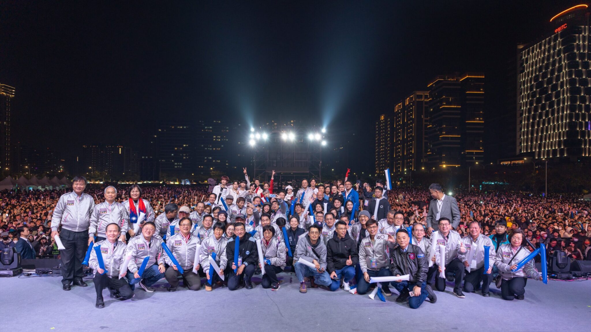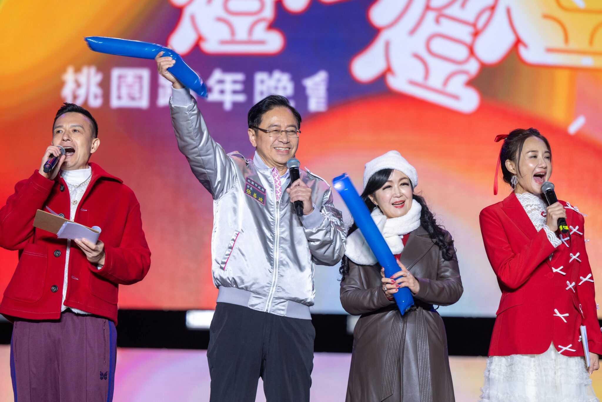 晚會包括立法委員魯明哲、市議員于北辰、王仙蓮、李柏坊、徐其萬、陳美梅、陳韋曄、梁為超、黃崇真、詹江村、錢龍、桃園市副市長王明鉅、秘書長溫代欣及市府團隊等均一同出席跨年活動。(照片/桃園市政府)