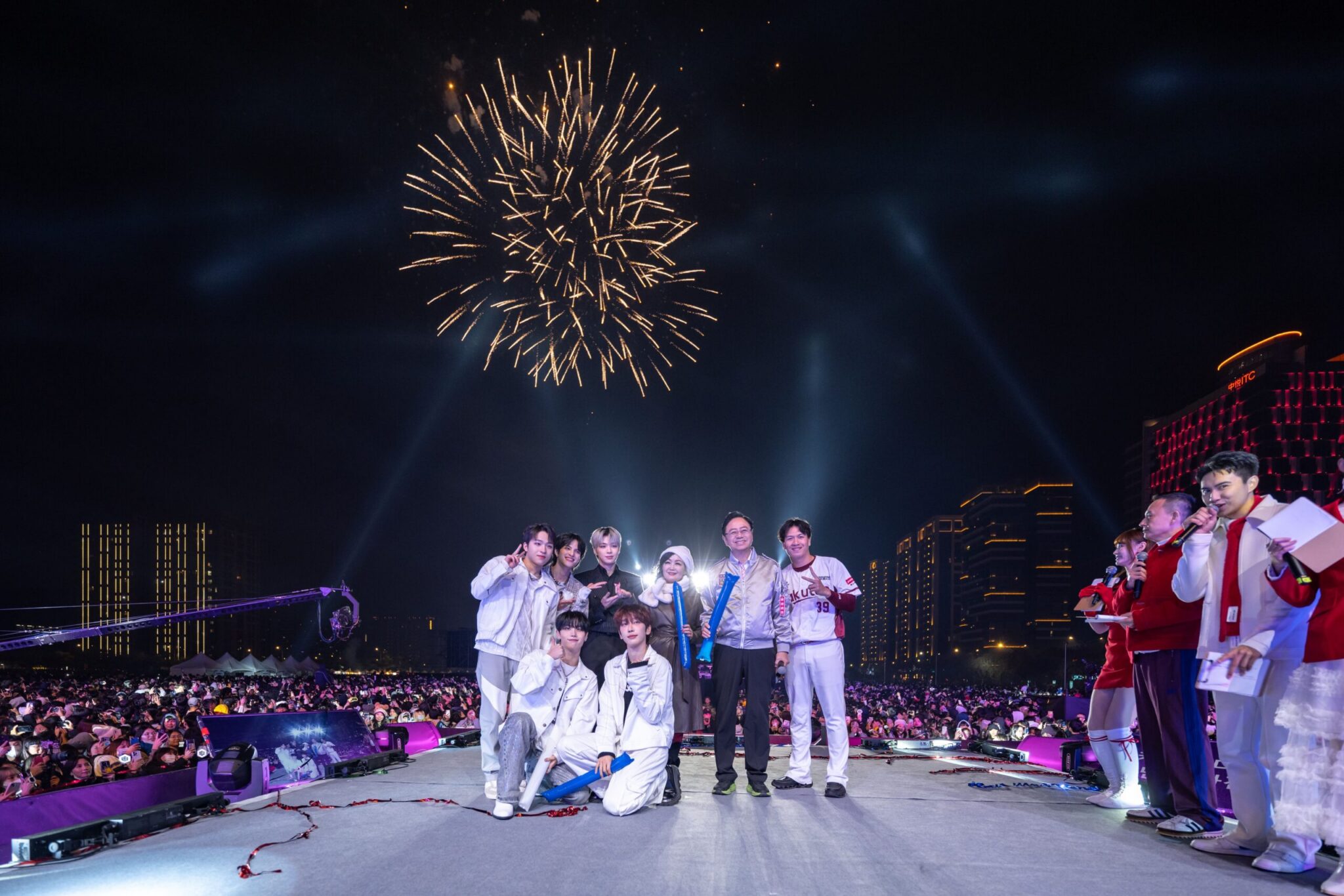 在倒數時刻,《世界12強棒球賽》林立亦驚喜現身,與張市長及市府團隊一起在臺上陪民眾倒數迎接2025年。