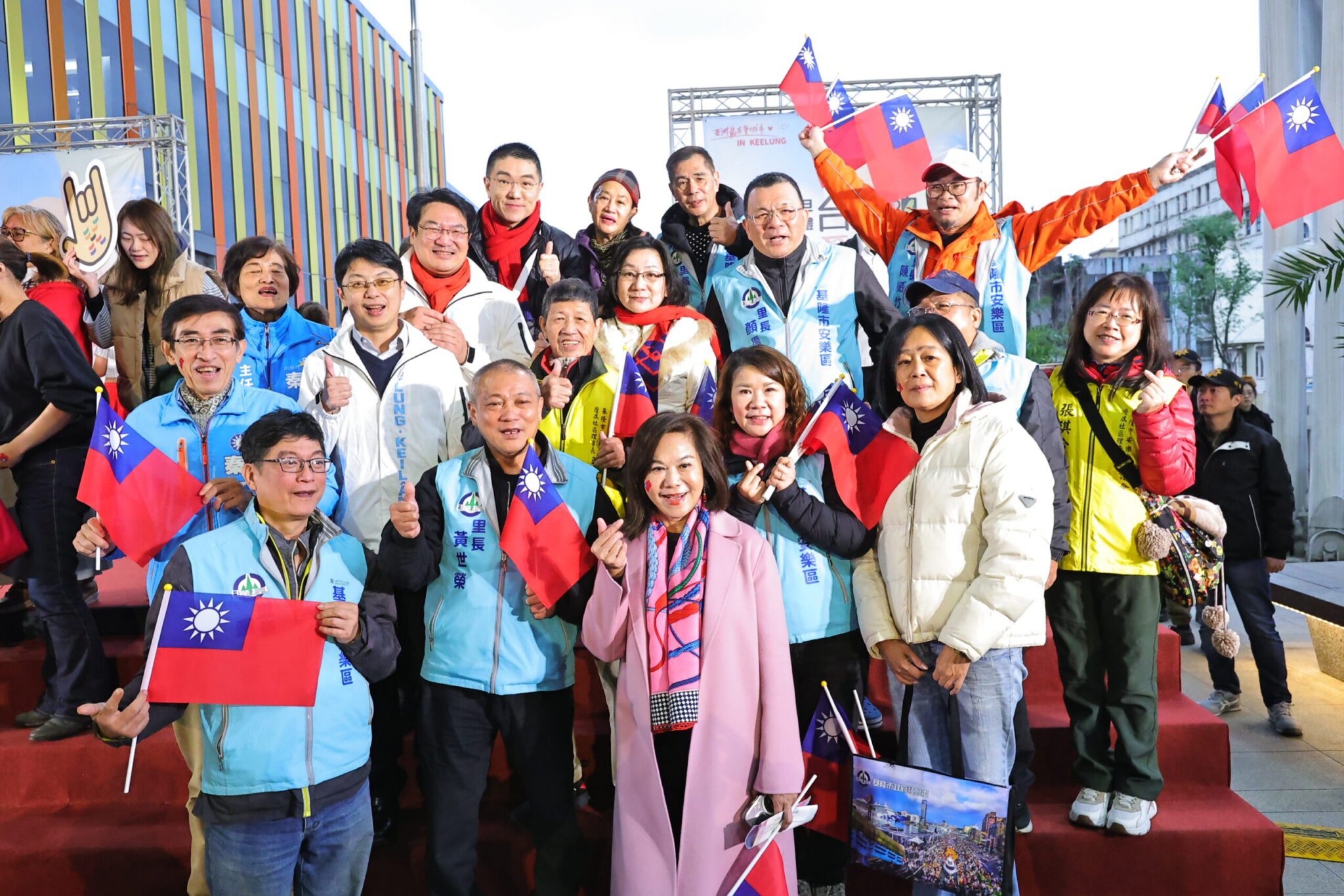 活動地點特別選擇在基隆轉運站的大頂棚下,考量基隆冬季的多雨氣候,提供市民安心舒適的參與環境,讓早起的市民感受到貼心的安排。現場更準備了暖手寶及國旗系列紀念品,並在活動結束後加碼派發神秘小禮物,感謝市民朋友們的熱情參與。
