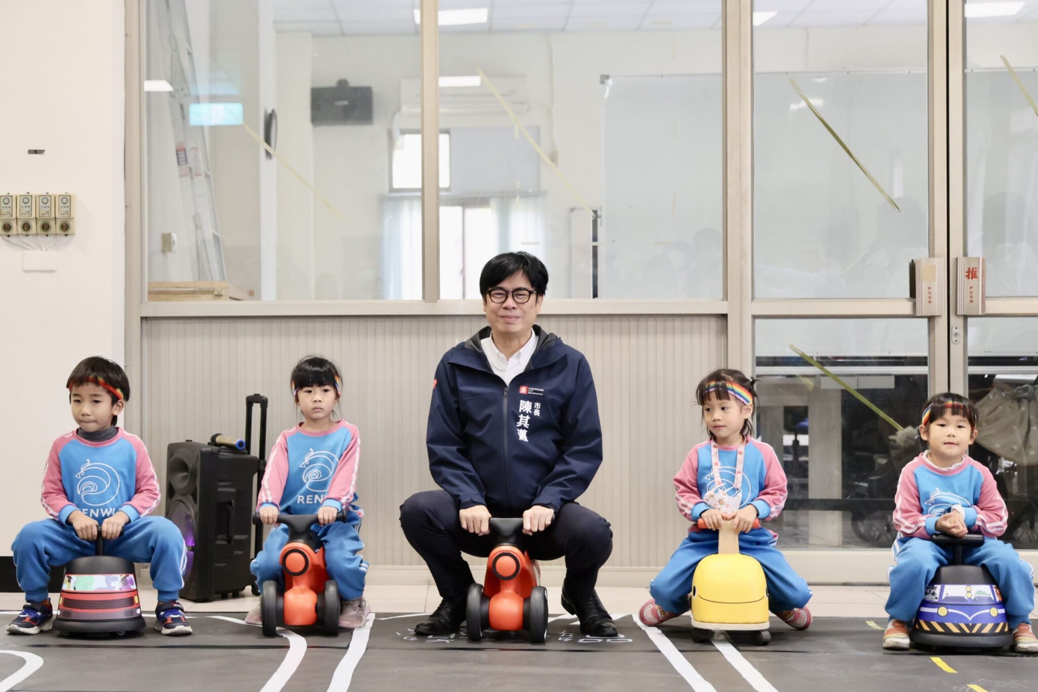 陳其邁說明,文南公共托嬰中心為仁武區第2處,也是高雄第61處公托,市府為推動友善育兒措施,113年修正公托機構收托原則,放寬每位嬰幼兒登記1家公托規定,調整為可登記2家公托,家庭有2名以上兒童,得優先公托,盼減輕年輕家長負擔。隨後陳其邁在工作人員導引下,逐一參觀公托空間,與幼兒玩樂互動,並參加三輪車競賽,現場笑聲不斷、氣氛歡樂。