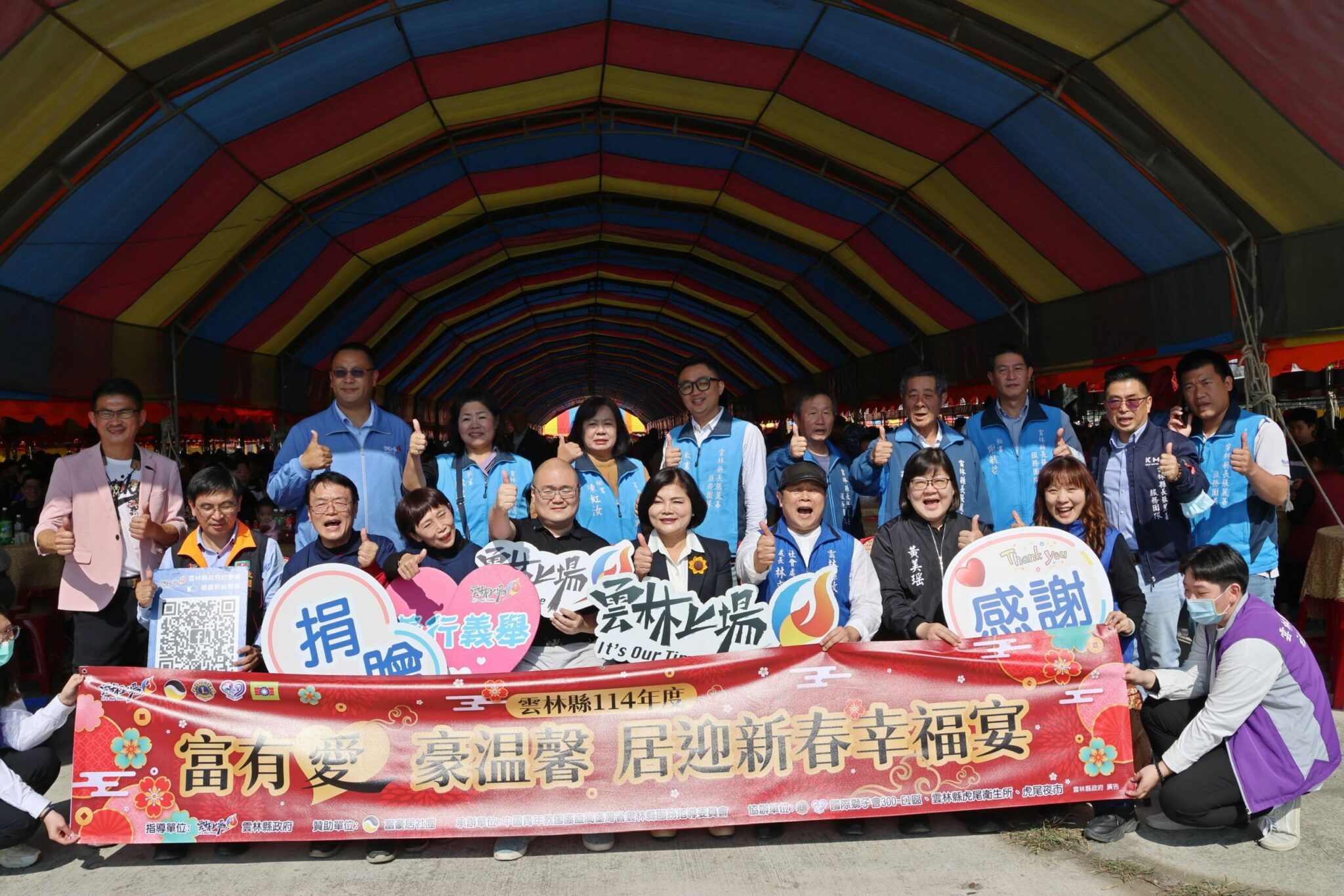 雲林縣政府今(4)日中午於虎尾高鐵特定區舉辦「富有愛,豪溫暖,居迎新春幸福宴」活動,由富豪居社團贊助250桌佳餚送暖本縣弱勢鄉親,縣長張麗善致贈感謝狀,感謝富豪居社團熱心公益、展現社會責任,持續造福本縣弱勢鄉親。