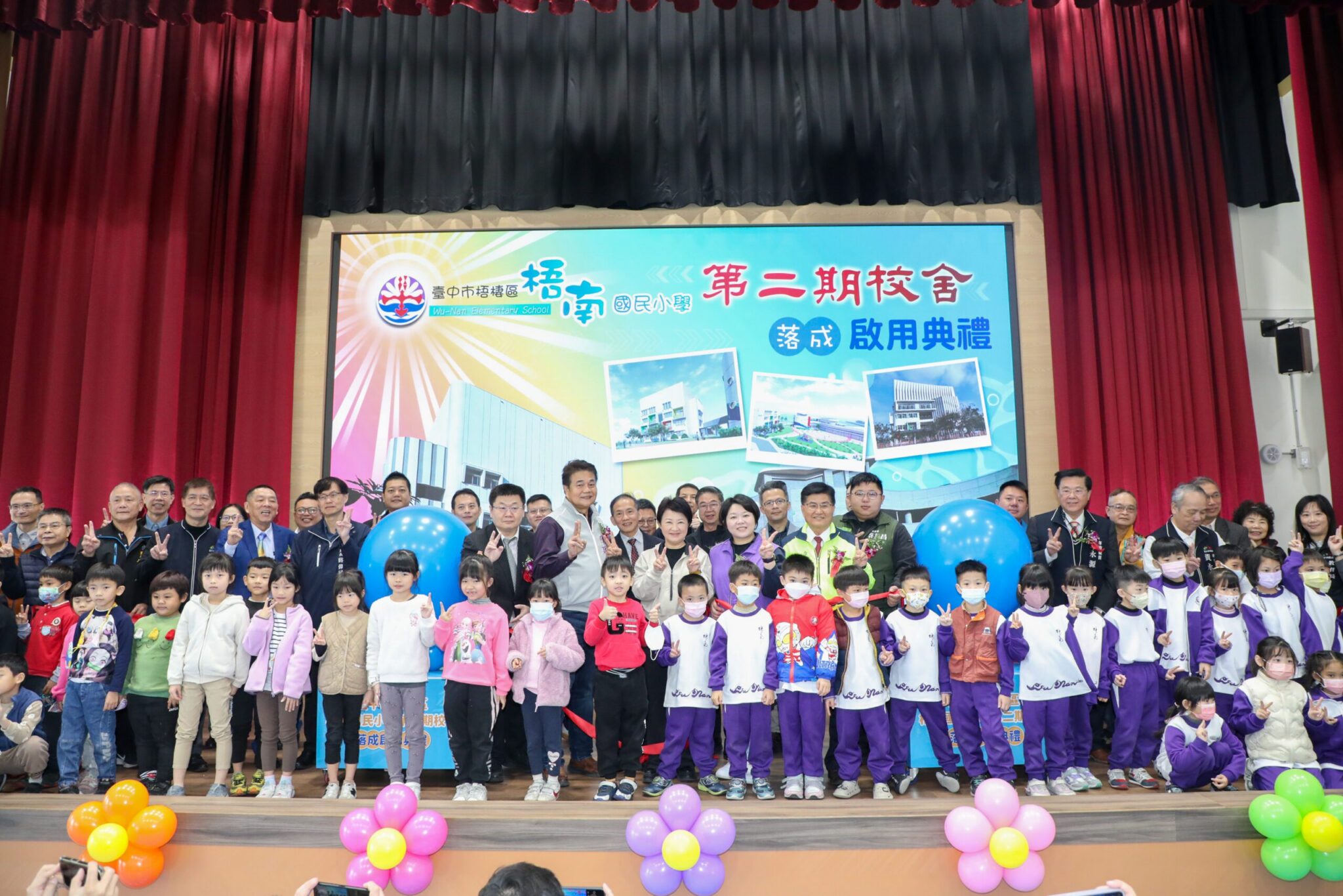 教育投資不能省!台中市梧棲區梧南國民小學舊校址位處關連工業區內,因校地狹小,考量家長接送學童不便,105年時搬遷到位於草湳里的新校區;而後校舍空間不足,市府編列經費新建,今(6)日舉辦二期校舍「映霞樓」落成啟用典禮,此校舍曾榮獲「2022國家卓越建設獎-公共建設類-金質獎」,校舍規劃包含幼兒園、國小教室及活動中心,市長盧秀燕及梧棲區各界地方貴賓到場,共同剪綵祝福新校舍啟用。