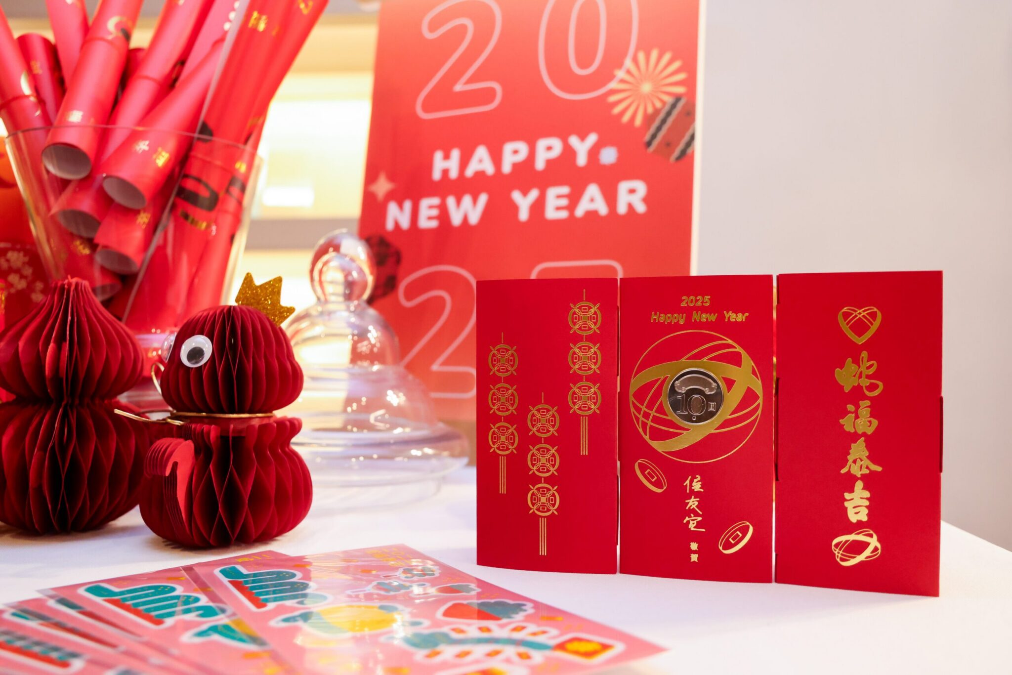 除春聯,新北的蛇年福袋採用新的立體三角造型,將福袋變成桌面或書櫃的喜慶擺飾,正面以古代錢串造型為設計發想,象徵帶錢來,蛇年賺錢(串錢)的寓意。五個錢幣也代表五福臨門的祝福意涵。其中「五錢」台語諧音有錢,祝福大家蛇年都賺錢,都有錢。