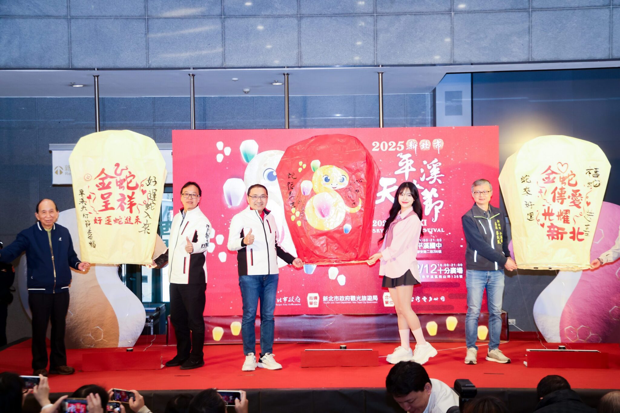 新北市市長侯友宜與活動代言人李多慧今(7)日共同公布「2025新北市平溪天燈節」將分別於2/8(六)在平溪國中、2/12(三)在十分廣場盛大舉行,邀請民眾一起前來「天燈祈福 蛇福泰吉」。