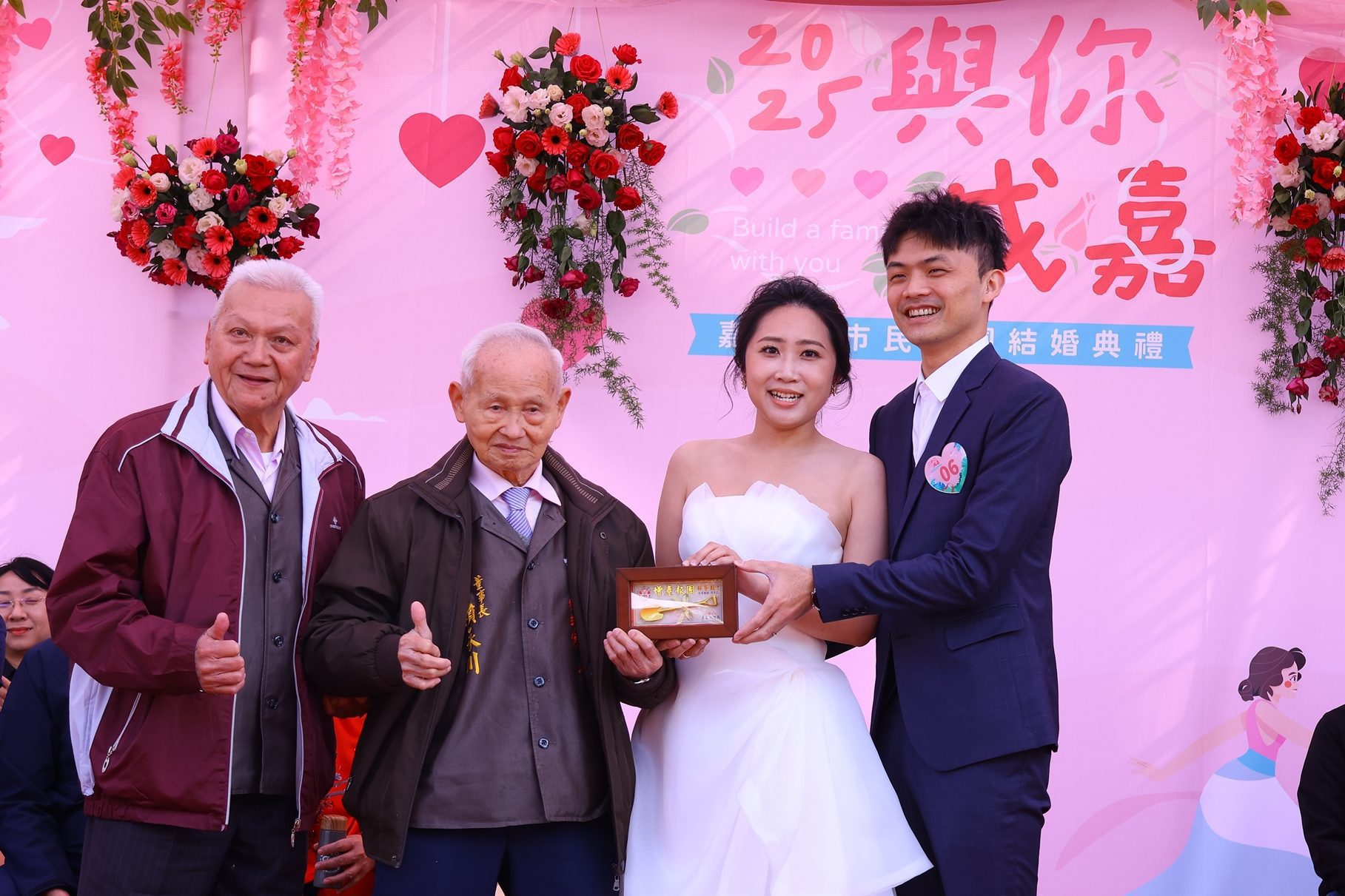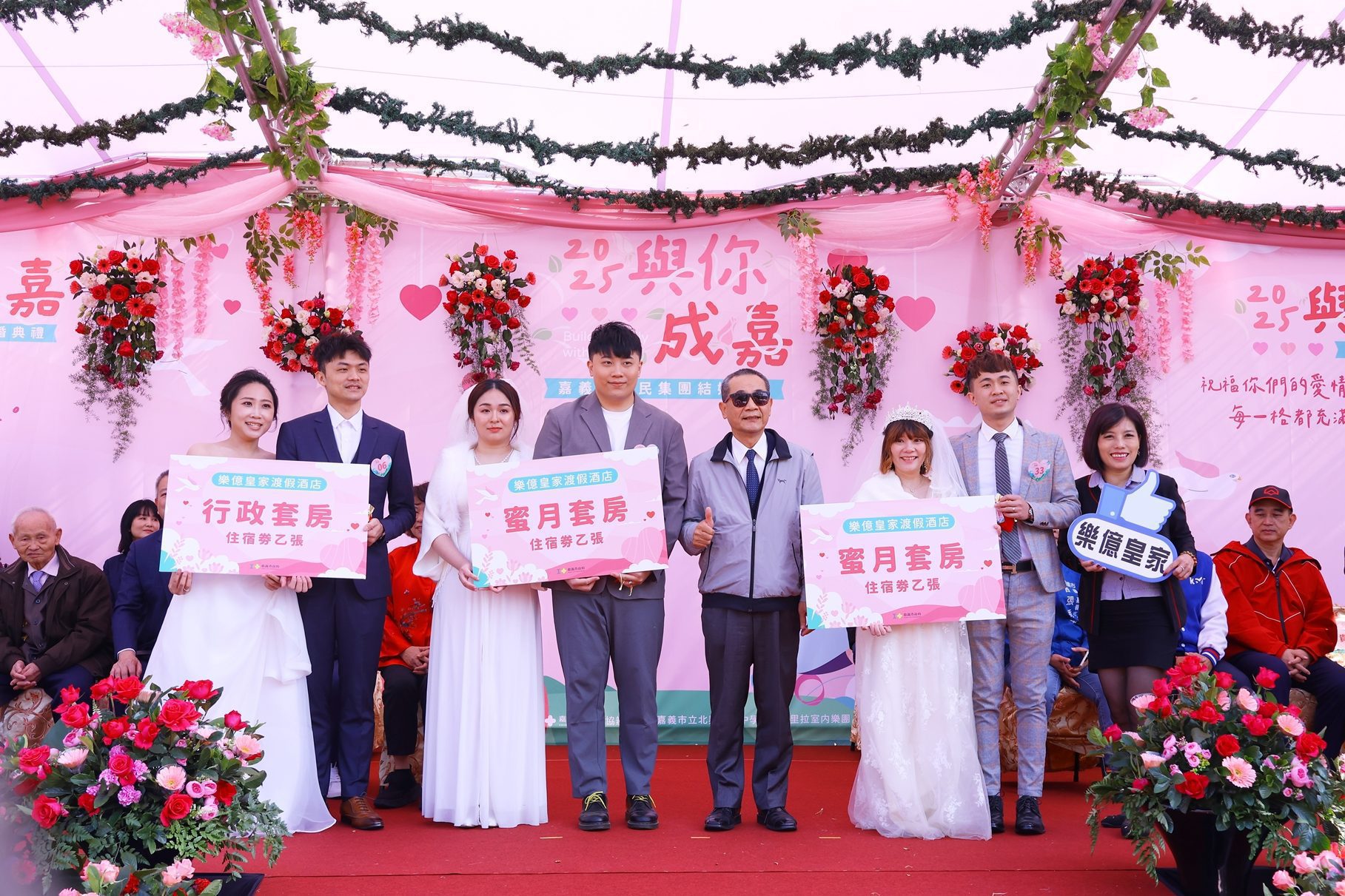 黃敏惠提到,市府團隊每年用心舉辦市民集團結婚,要讓每對佳偶留下永生難忘的會議。現今青年人在創業、就業及成家方面面臨許多挑戰,嘉市府持續推出各項政策支持,希望為他們減輕壓力。更感謝社會各界提供資源,為活動營造溫馨氛圍。