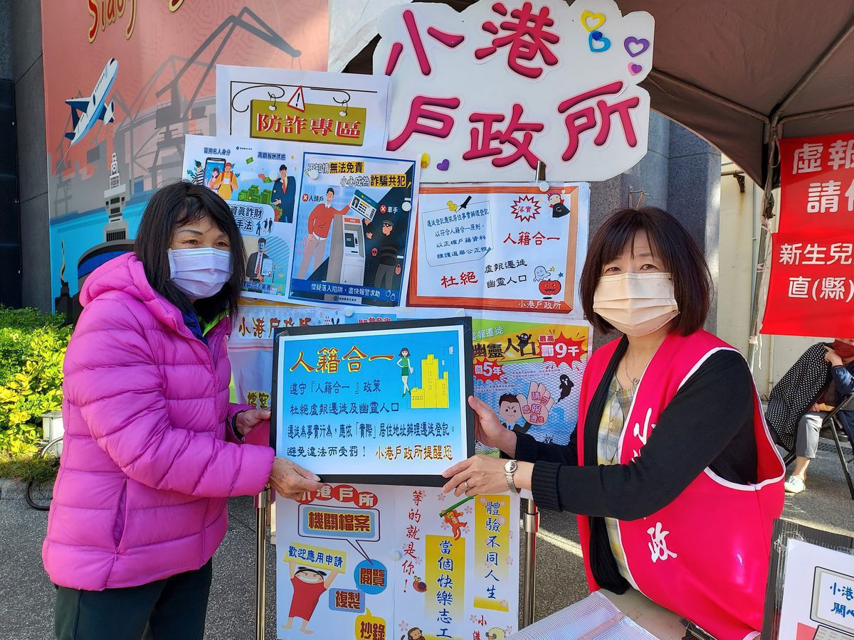 小港區公所114年1月13日辦理「新春揮毫活動」,金蛇樂舞春添彩,邀請書法大師筆下生輝,吉祥金句春聯送市民,小港戶政所辦理業務宣導一同迎春送喜,特別準備實用精美禮物,邀請市民追蹤小港戶政所臉書,迅速輕鬆掌握戶政業務新知與推陳出新的服務-包括行動自然人憑證,亦可線上申辦戶籍登記,手機洽公超便利;「人籍合一」政策,依居住事實辦理遷徙登記,杜絕虛報遷徙與幽靈人口;適齡婚育之國家人口政策等,與市民零距離互動溝通,擴大宣導效益。