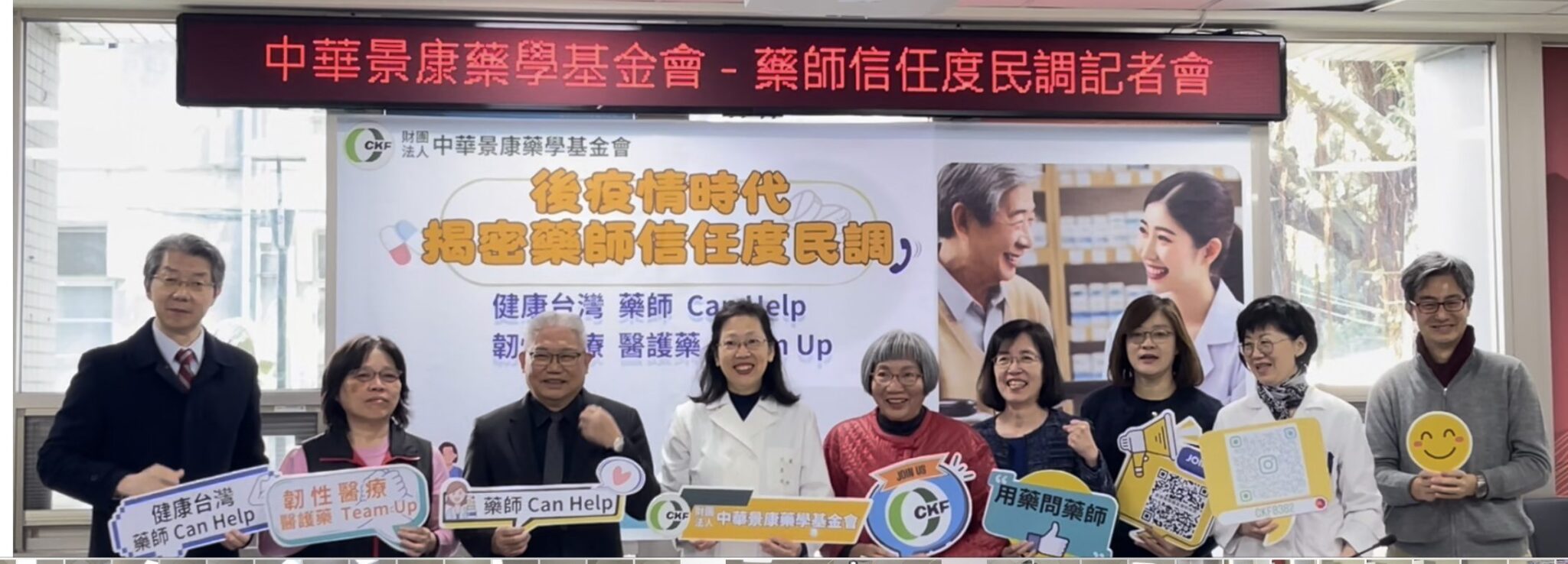 景康藥學基金會常務董事高雅慧說明,前3名由醫療體系專業人員獲得,信任度皆超過7成,分別以護理師、醫師、藥師為最高,有73%民眾信任藥師,平均信任度達3.96分(滿分5分),護理師、醫師則分別為79.7%、77.9%。其中,台北市居民、年齡20至40歲、教育程度專科以上者,對藥師信任比率最高,超過8成。因此,從本次民調可見,藥師受到民眾信任,且可在健康台灣政策中扮演重要角色,健康台灣要順利推動,透過制度設計落實醫藥分業是必要之務。