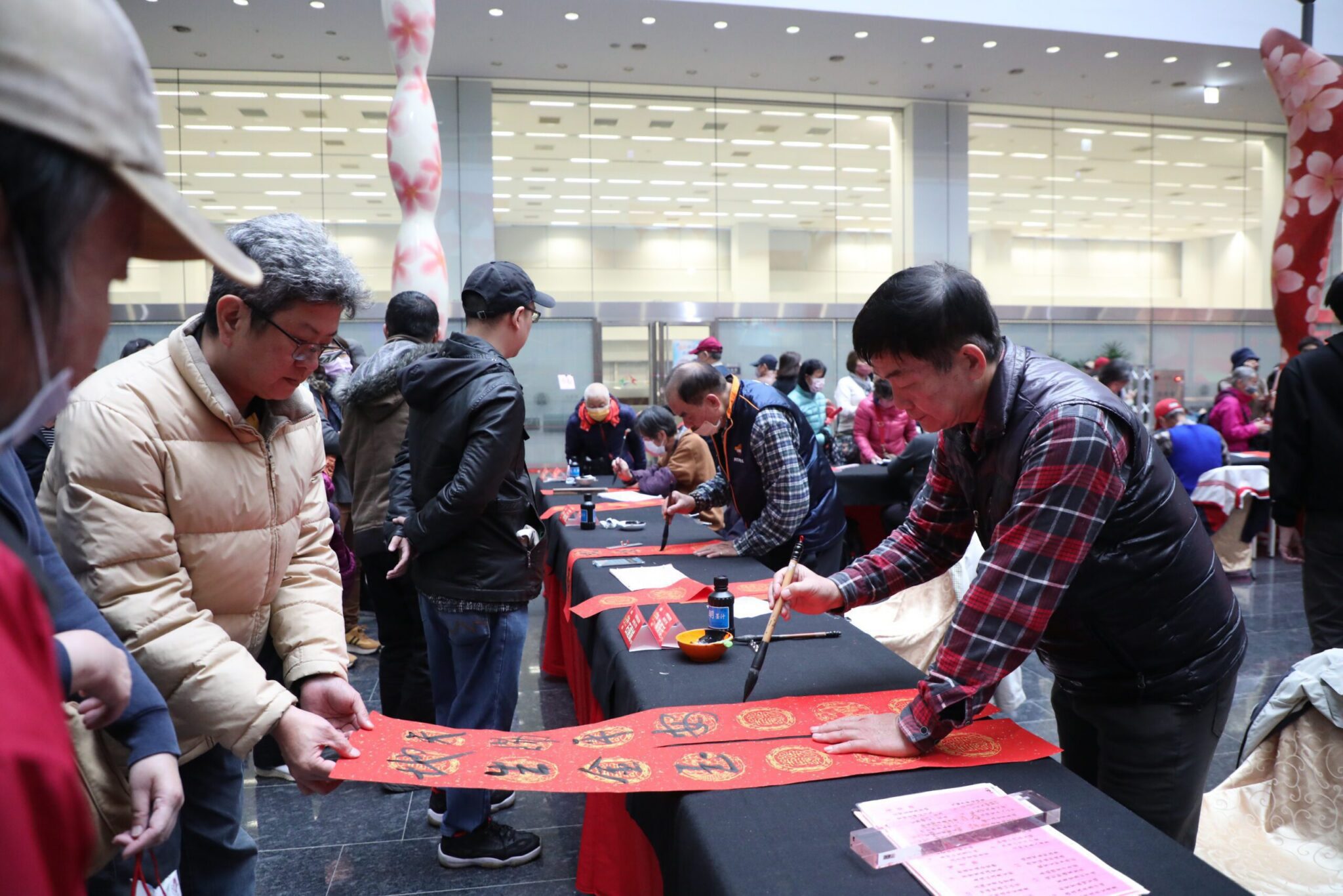 秘書處進一步說明,揮毫活動自上午9時30分至下午4時30分,同步於台灣大道市政大樓惠中樓、文心樓1樓中庭及豐原區陽明市政大樓舉行;每人可領取七言1幅、四言1張、一言3張及8K年畫紙1張,一起同享農曆年節氣,活動現場還精心規劃年節特色小活動及發送限量精美紅包福袋,凡參加年節特色小活動的民眾即送限量好禮,數量有限送完為止,千萬不要錯過!