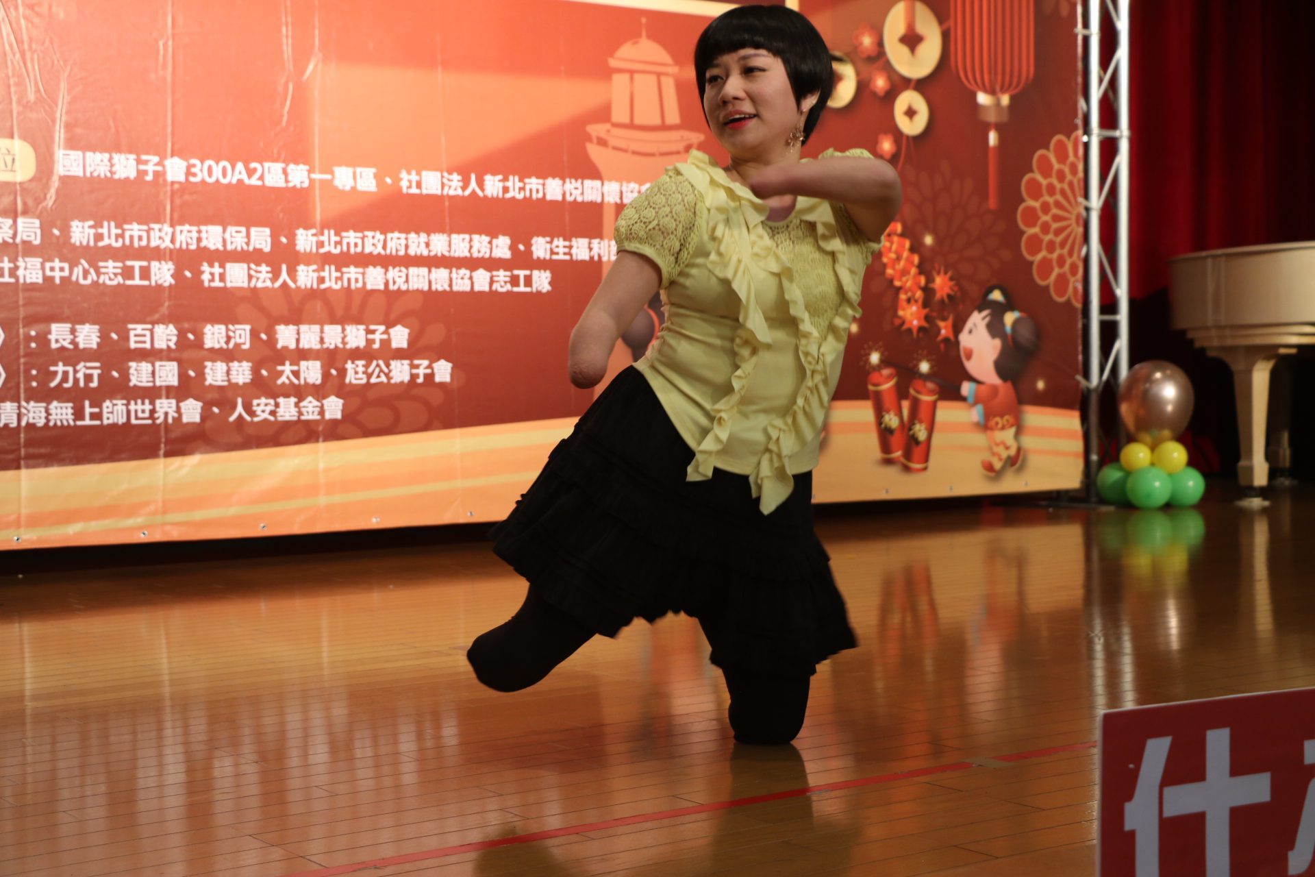 7歲時因病截去4肢的「微笑天使」郭韋齊,不僅彈奏鋼琴還表演舞蹈。(新北市社會局提供)