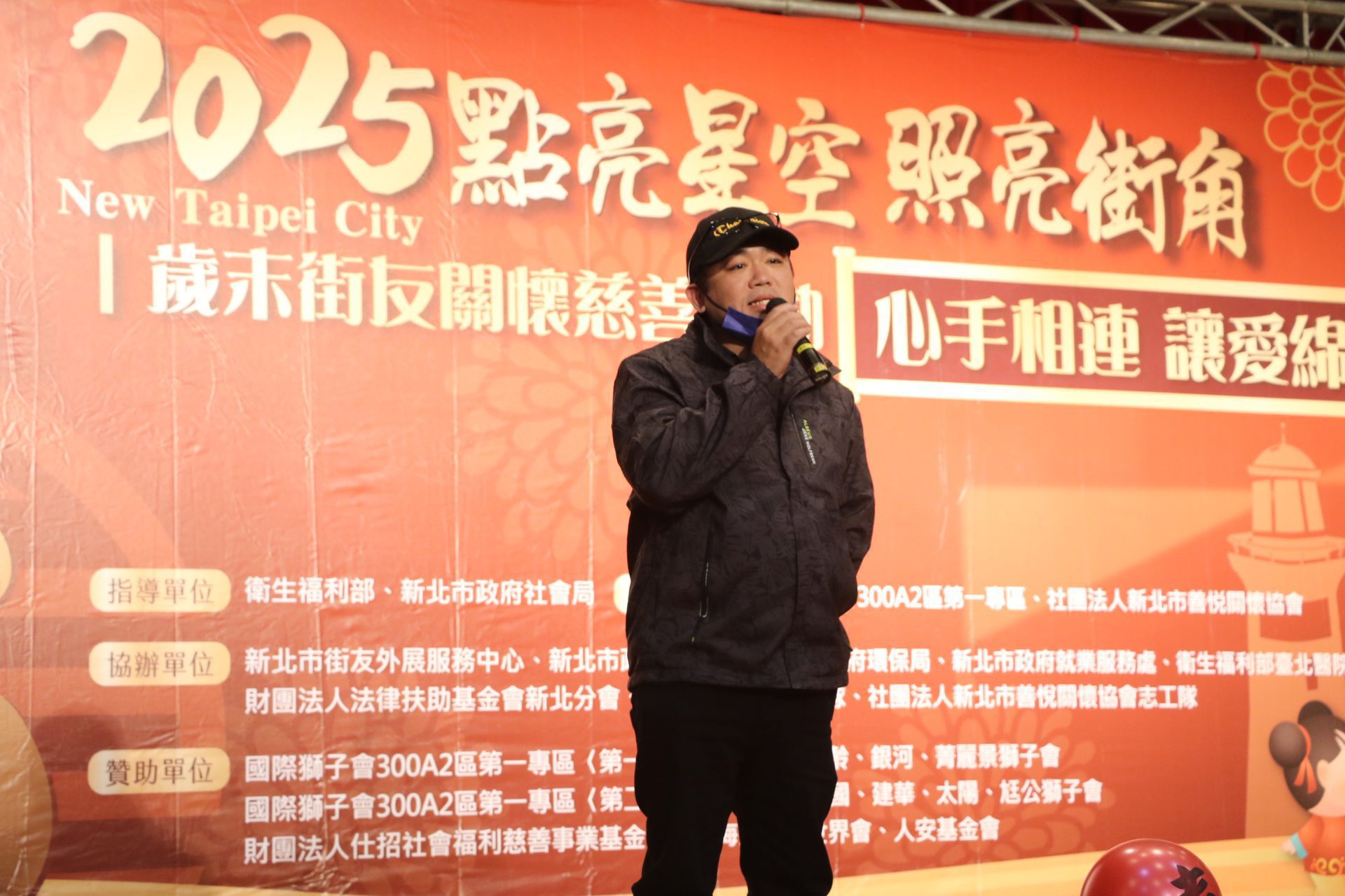 為了讓街友也能感受到社會的關懷與溫暖,新北市社會局攜手社團法人新北市善悅關懷協會舉辦「點亮星空、照亮街角」活動,媒合仕招基金會、人安基金會、國際獅子會、清海無上師世界會等,在新莊元亨寺提前圍爐。協會理事長會常法師並請天生畸形兒街頭藝人王奇男和因病截去四肢的「微笑天使」郭韋齊表演歌唱、鋼琴和舞蹈,兩人以「樂觀的人永遠有路可走,悲觀的人永遠在十字路口!」鼓勵在場的街友。
