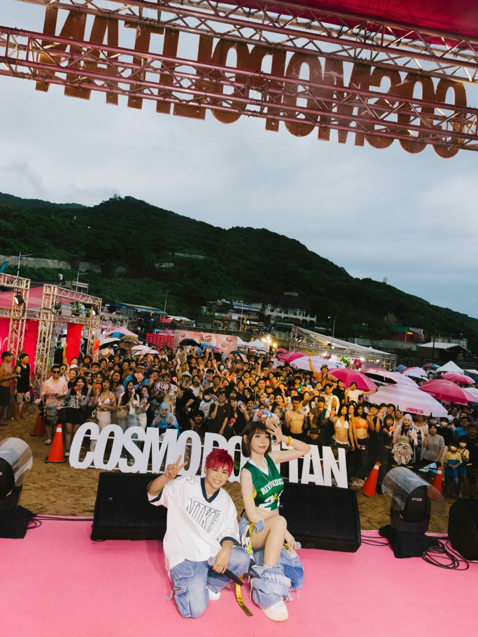 B-boy NANA (左)和林明禎(右)帶著新歌《剪刀石頭布》登上「柯夢波丹夏日海攤派對 照片提供:開心果娛樂