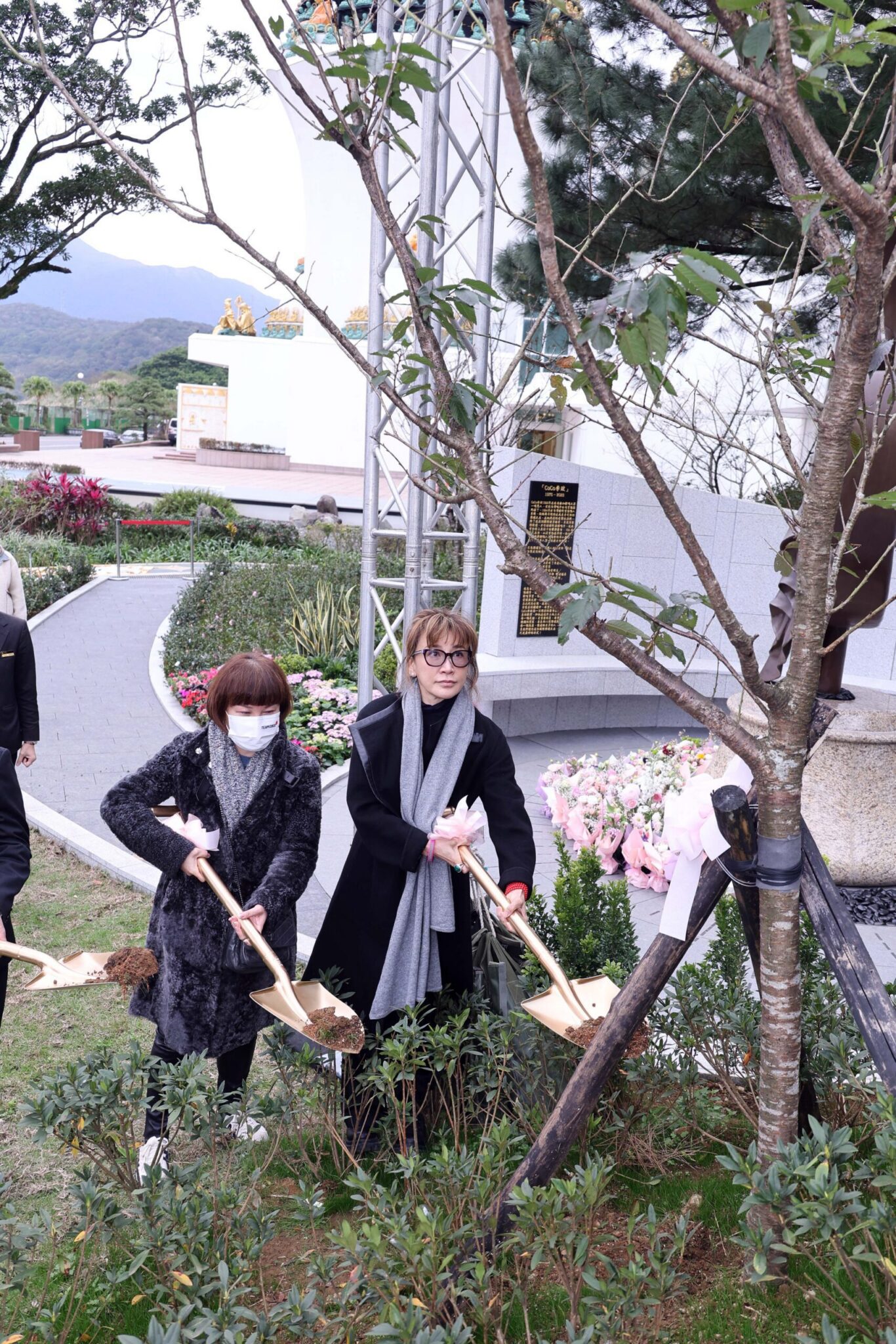 CoCo李玟二姐Nancy(右)大姐Carol(左)出席雕像揭幕儀式、種樹代表對CoCo0思念延續 照片提供: CoCo李玟 家人
