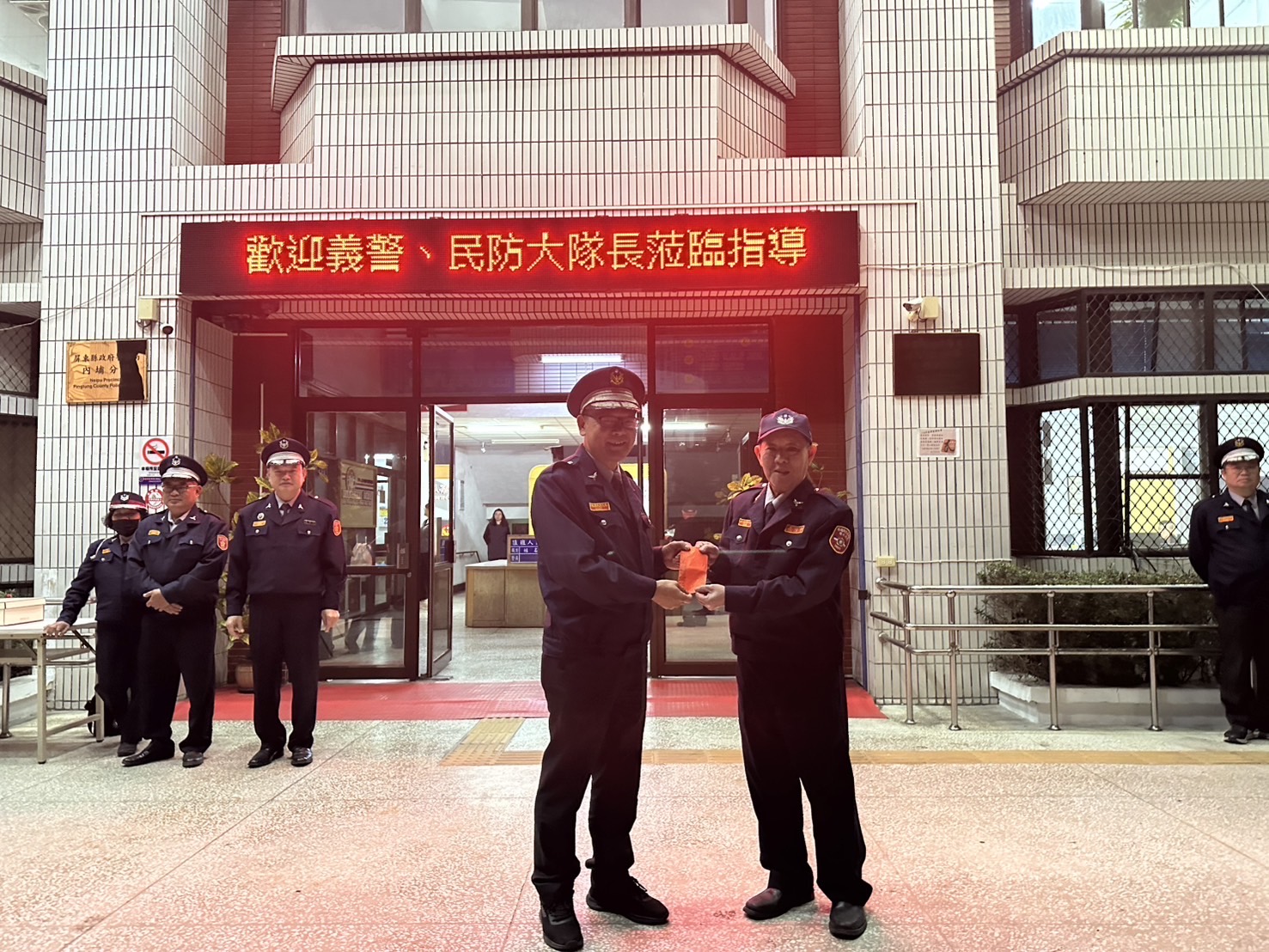 為體恤同仁辛勞, 20日晚間在警察局防治科長劉坤宗保安科股長洪祥益陪同下,民防大隊長蔡雙喜、義警大隊長洪景崇攜帶運動鞋、LED肩燈等慰問品及慰問金至該分局慰問義警及民防協勤人員辛勞,使同仁倍感溫馨;民防蔡大隊長、義警洪大隊長表示,民力伙伴在春節期間協助警察同仁支援各項服務工作,希望民力伙伴能夠展現服務精神,以熱忱的服務態度,讓民眾能安心快樂過新年。