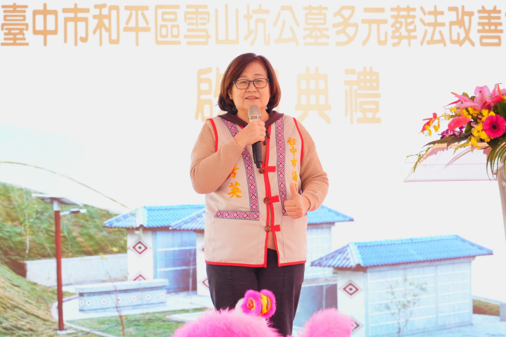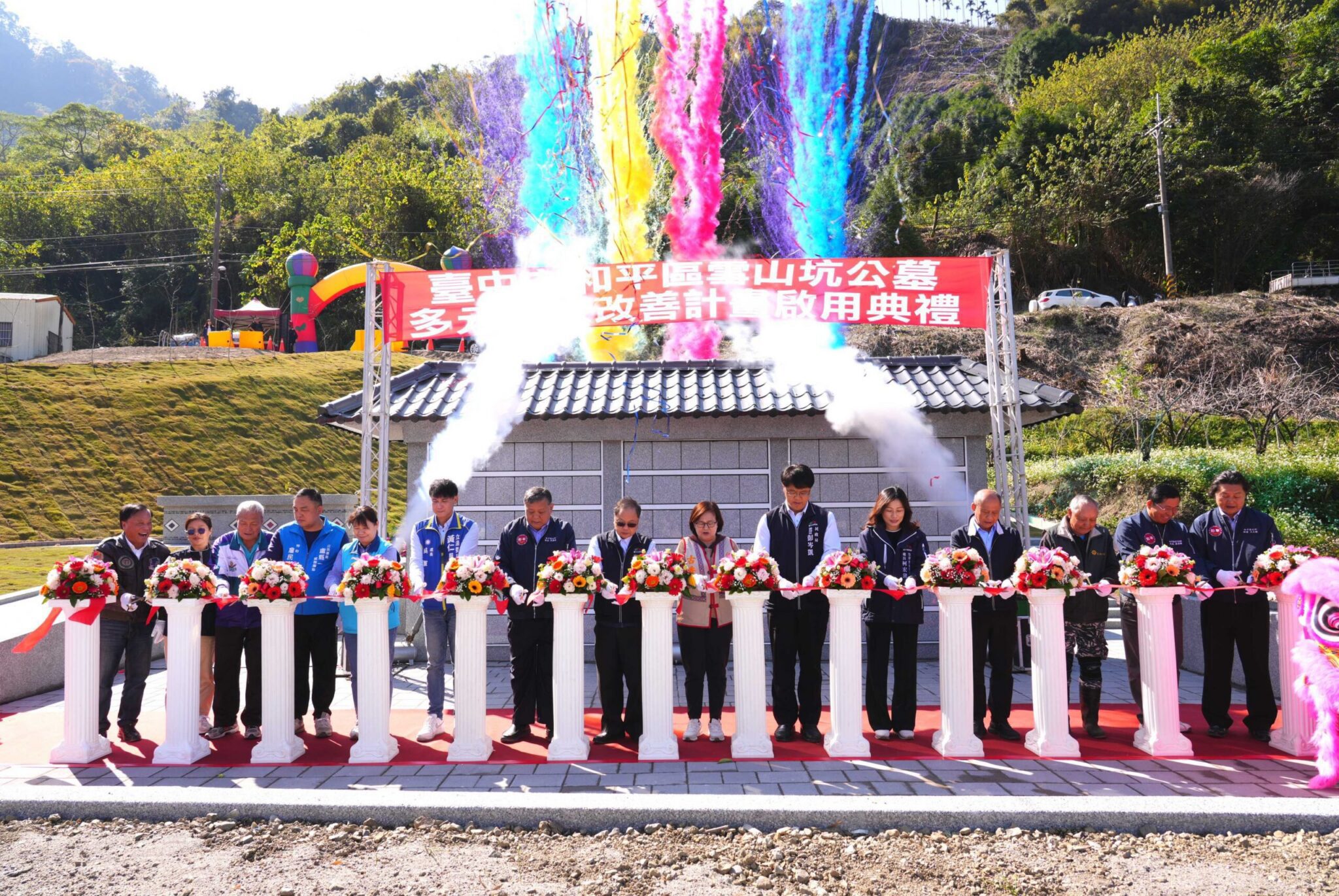 吳局長指出,部落重視在地安葬,祖靈才能安息。雪山坑公墓納骨牆得來不易,109年起歷經部落會議達成共識,完成禁葬、遷葬、起掘暫厝,並推動興辦事業及水保計畫。為加速推動工程進度,民政局副局長彭岑凱自112年起每兩週召開一次工程會議,協助公所及市府跨機關的聯繫與合作,工程施作期間更歷經多次豪雨及颱風,如今工程順利且如期完工;感謝各市議員及代表會、里長的協調及支持,攜手提升原鄉殯葬設施量能。