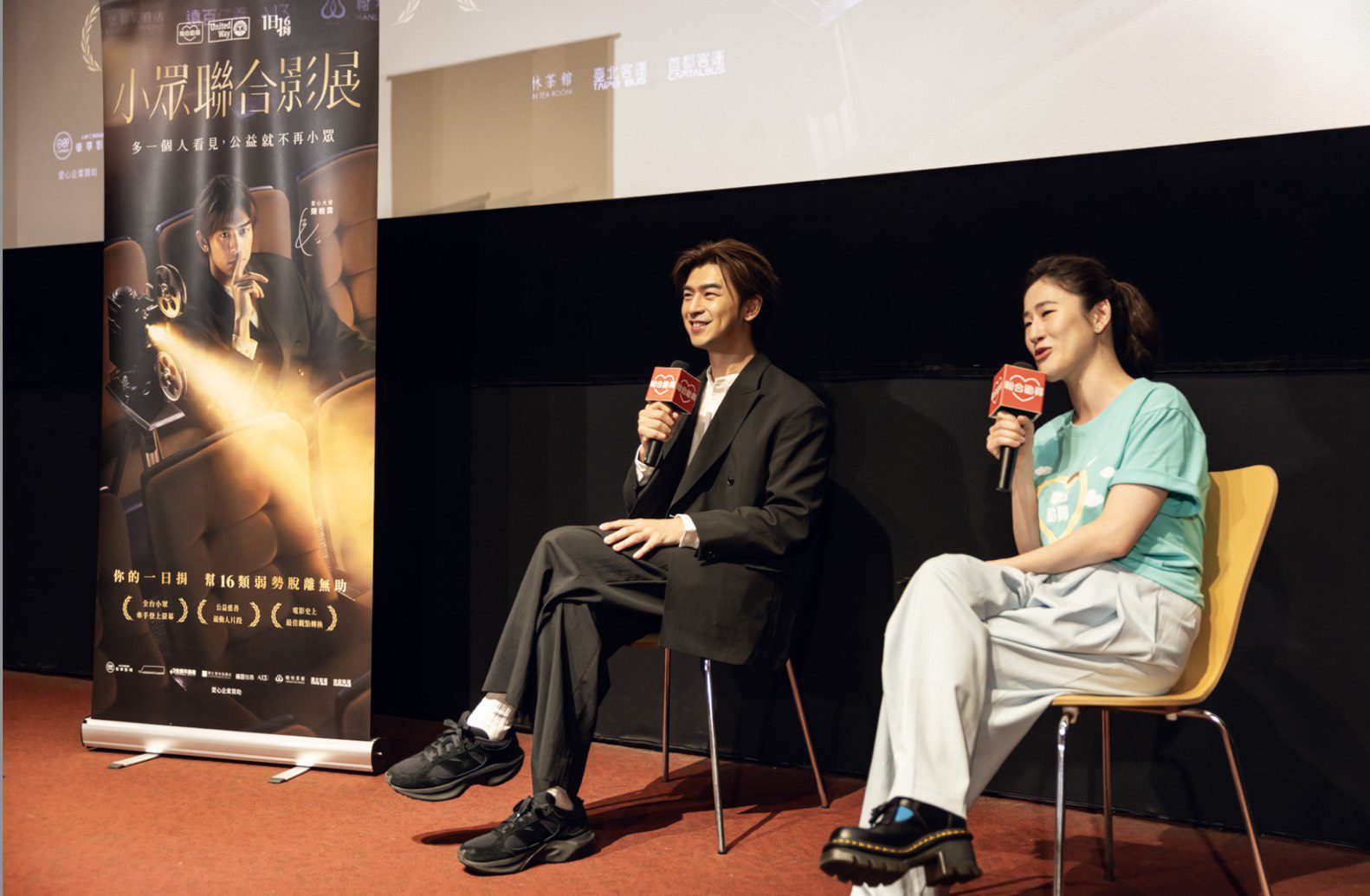 聯合勸募一日捐愛心大使陳柏霖(左)與主持人百白(右)分享小眾聯合影展拍攝心情 照片提供:聯合勸募
