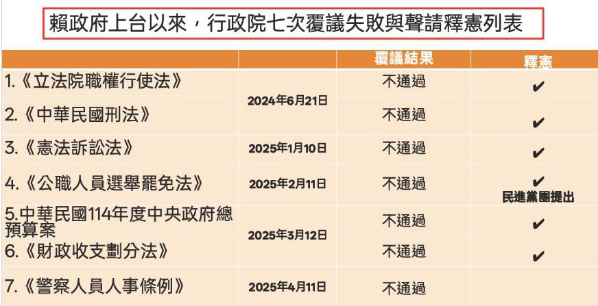 翁曉玲並以圖表詳細說明過去一年來立法院重大法案的朝野爭議,以及行政院不尊重多數民意的諸多反民主作為,與民進黨幕後策動大罷免的不正當性(如下圖表)。