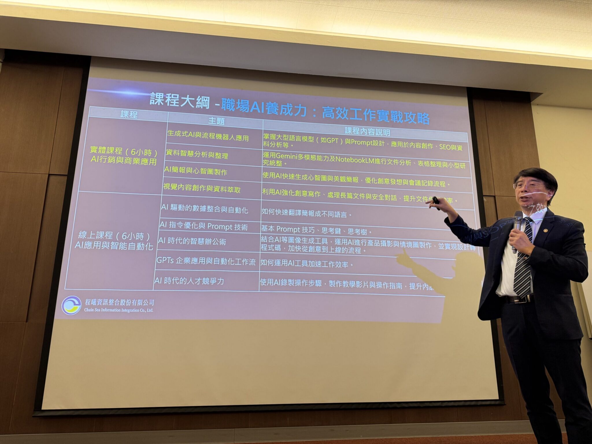 基隆工策會邀請程曦資訊公司董事長黃士軍發表「AI浪潮下的企業轉型與生存策略」。黃董事長指出,企業面對當前數位蛻變的挑戰,是否要轉型,首在於思考能不能生存下來。基隆市工商發展投資策進會總幹事林有志則表示,中小企業普遍面臨資源不足與轉型壓力,基隆市爭取經濟部補助,協助企業建構並導入AI系統,將艱深技術轉化為實用工具,協助企業降低轉型門檻、強化競爭實力。