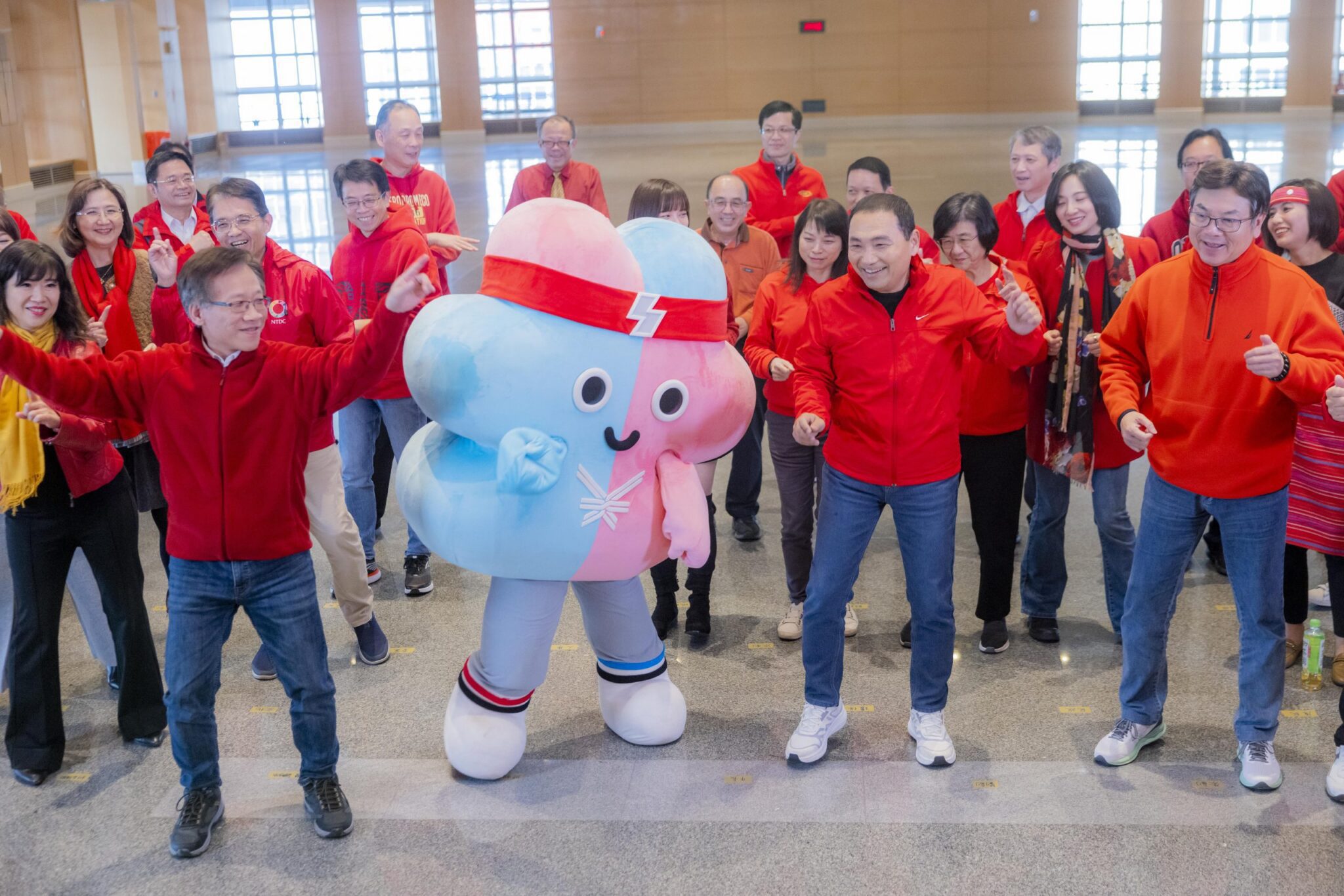 世壯運吉祥物壯寶與市府團隊齊賀新年。(新北市政府提供)