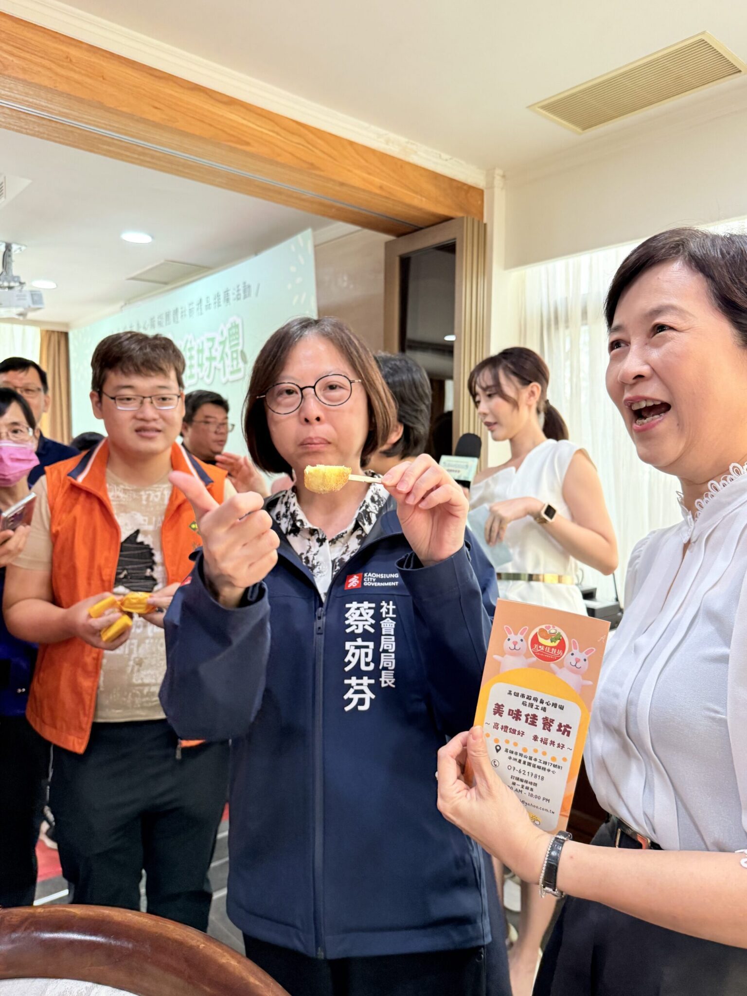 圖説:社會局蔡宛芬局長試吃各項產品,好吃到讚不絕口。(記者王承綸/攝)