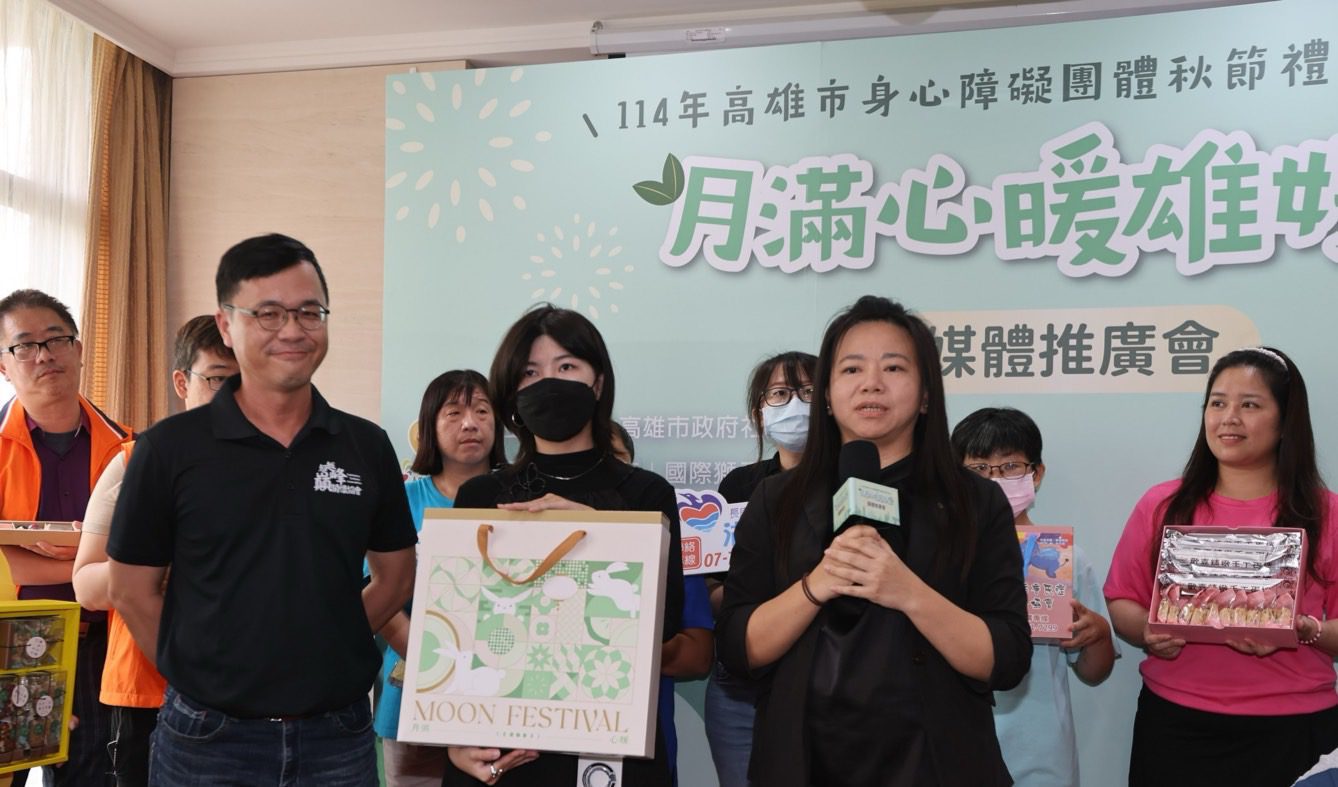 為推廣高雄身心障礙團體精心製作的中秋禮盒,高雄市政府社會局今(24)日於市長官邸舉辦媒體推廣會,宣布秋節禮品正式開賣,邀請全國民眾及企業團體透過「礙優網」線上選購支持。8月16日也將在衛武營榕樹廣場舉辦「月滿心暖 雄好禮」大型推廣活動,邀請高雄在地23家身障團體,展售上百項應景禮品,邀請大家共襄盛舉、選購佳節好禮,傳遞祝福與溫暖。