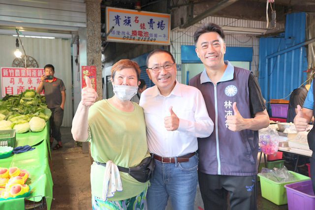 新北市長侯友宜陪同藍委林沛祥到基隆安樂市場拜票。(照:林沛祥提供)