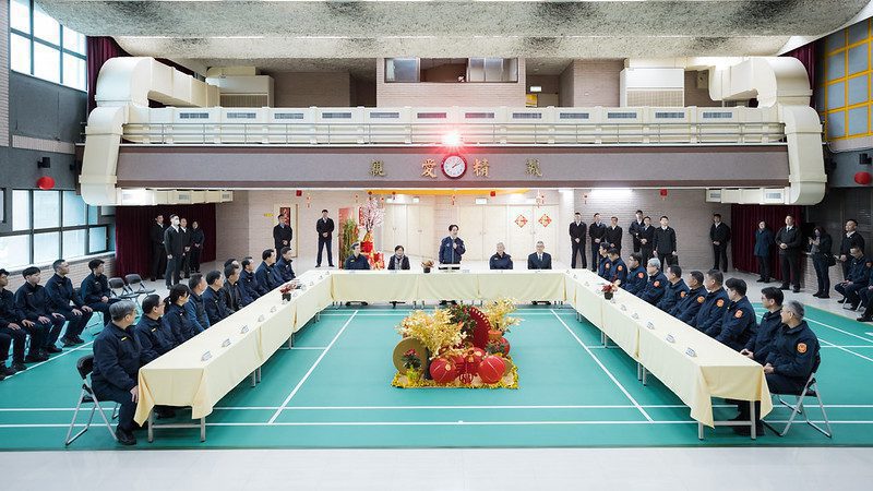 總統賴清德今(27)日小年夜下午偕同內政部長劉世芳、警政署長張榮興、臺北市警察局長李西河等人,分別前往台北市中正第一分局與第二分局頒贈春節加菜金,慰勞員警過去一整年的勤務辛勞,中正一員警也藉此機會向總統合影與致贈客製化Team Taiwan棒球紀念品,並祝福總統新的一年「蛇來運轉、嘶嘶如意」。