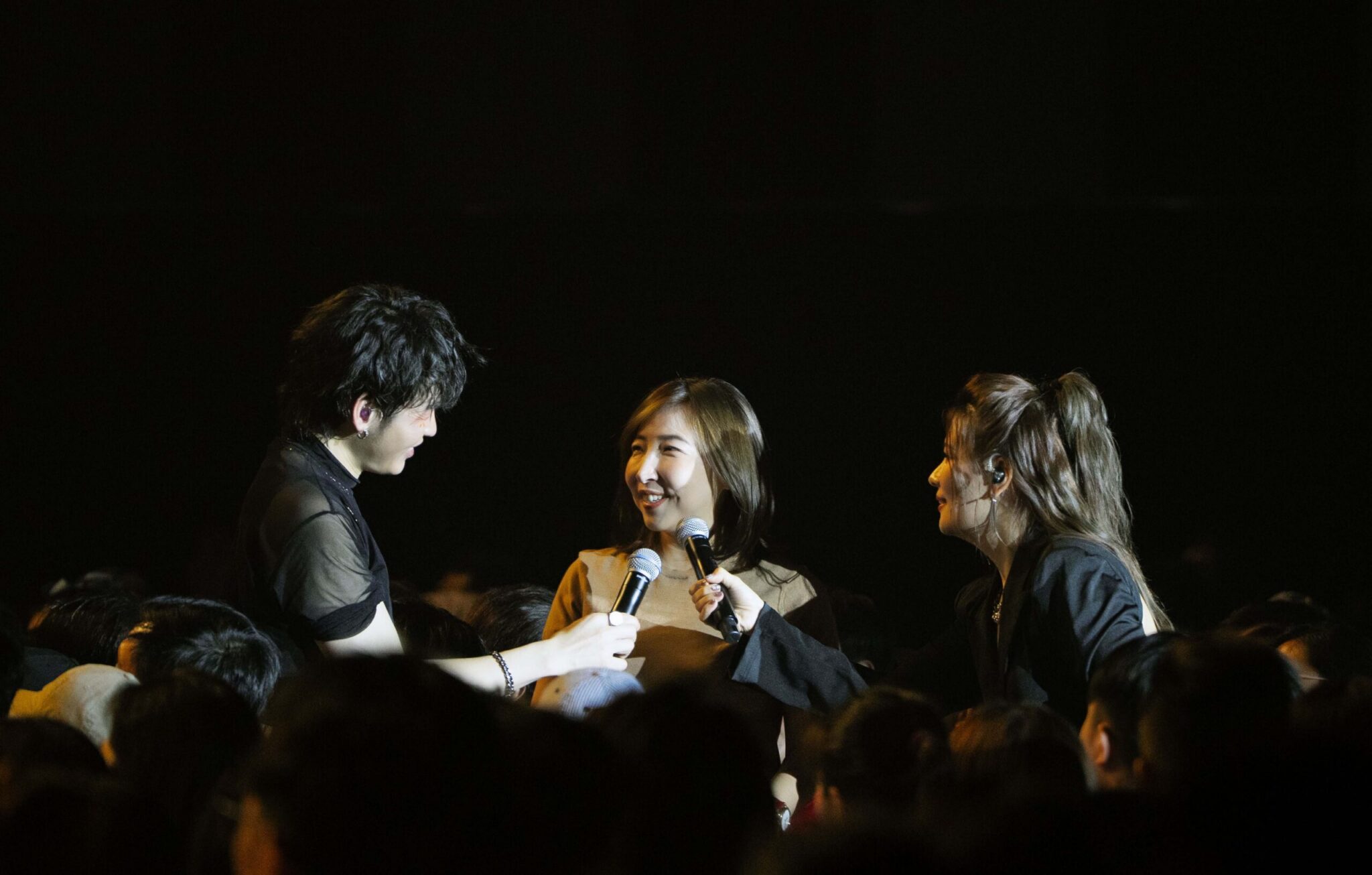 精彩不只如此,展瑞與董仔在觀眾席互動時,突然間陳漢典竟從兩人中間竄出,讓現場大驚喜!這段其實是他們特別設計的驚喜橋段,漢典不只脫口秀還大跳〈Coffee High〉,帶領大家跟著節奏擺動,展榮當場虧他:「就是要讓你尷尬,來這裡還I人啊!」驚喜不停,展瑞與董仔繼續在台下遊走,又在觀眾席捕獲導演野生陳玉珊,先是致謝她打造電影《我的少女時代》、《一吻定情》邀請出演,更忍不住調皮說:「但今天我們還是不會放過整妳的機會!」逗得全場爆笑。最高潮來自陳玉珊在〈愛的重低音〉節奏下首度熱舞,將自己的熱舞處女秀獻給展榮展瑞,全場沸騰!