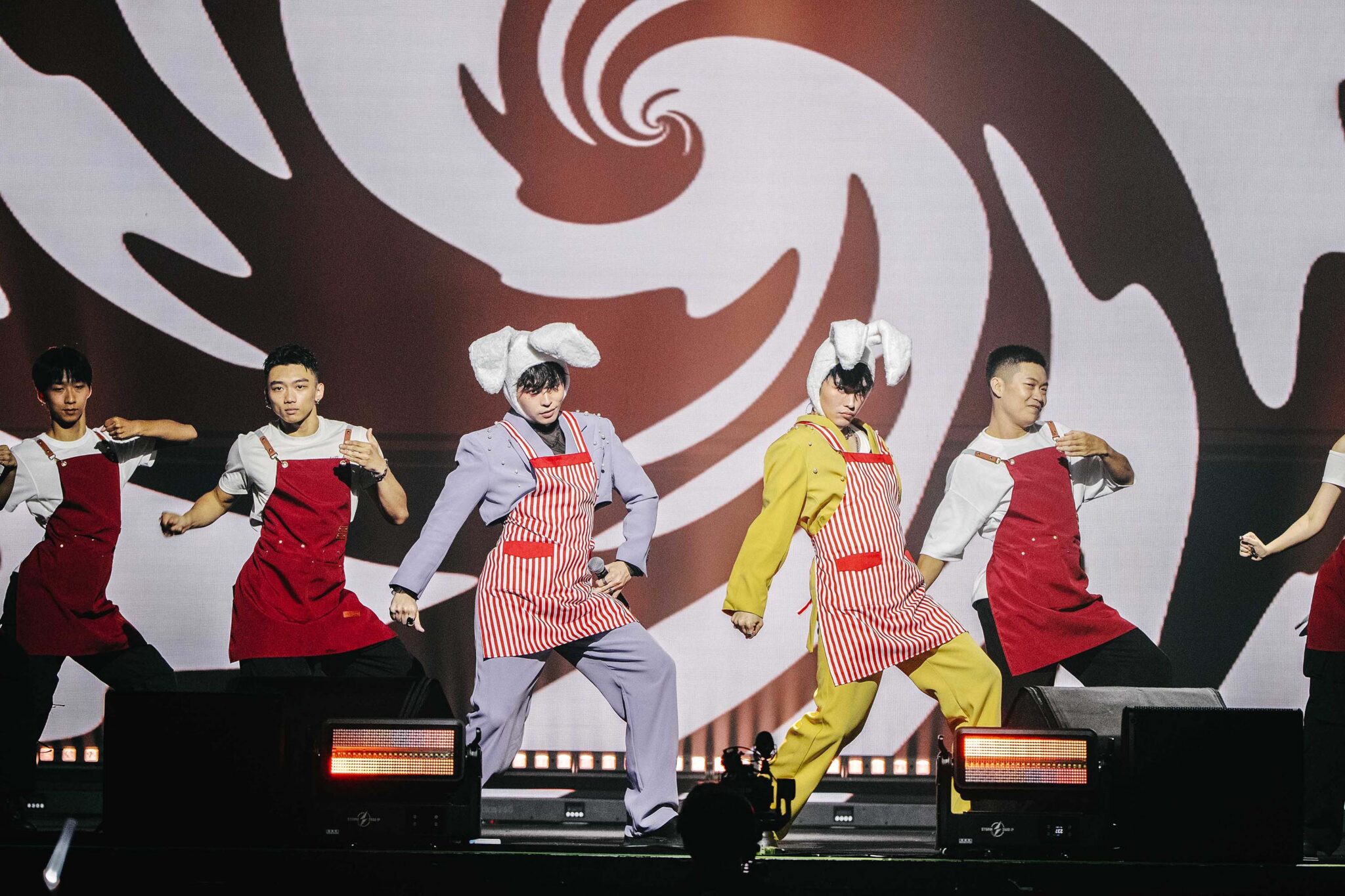 小伙伴茵聲、董仔驚喜擔任首組嘉賓,帶來〈這是我〉、〈皮在癢〉、〈卡關〉三首合唱曲目後,更聯手展榮展瑞重磅推出「超瞎翻唱」單元,掀起全場最大笑浪!翻玩〈水晶吊燈〉(Chandelier)時,兄弟倆還一展瑜伽密訓成果,跳出完美芭蕾旋轉。經典翻唱不只惡搞,還創意加乘,竟把韓國爆曲〈APT.〉翻玩成〈洗刷刷〉,越南神曲〈See Tinh〉也變成爆笑台語歌〈叮叮噹〉,全場2000位粉絲笑到炸裂、跳到不行!