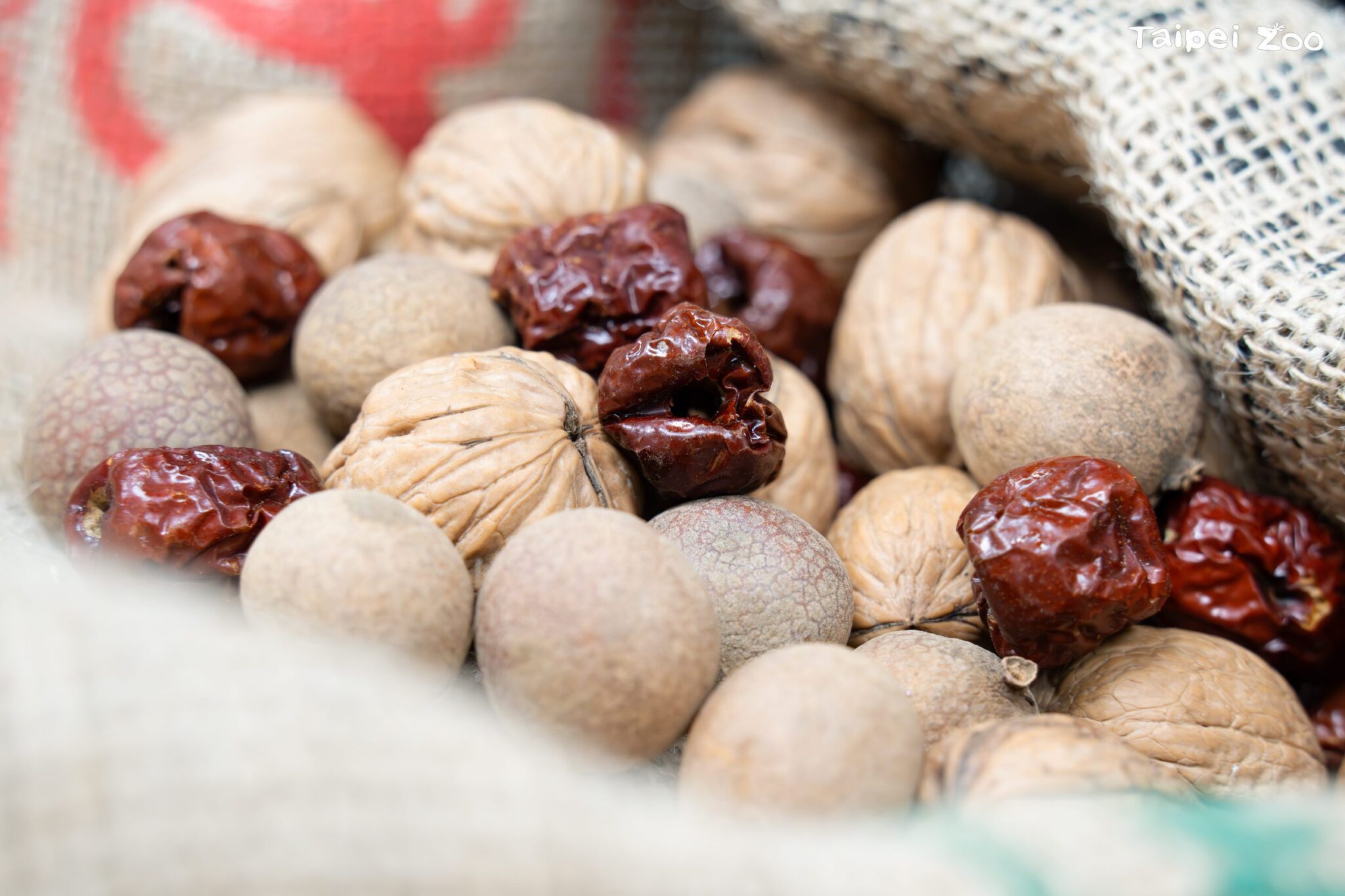 北市動物園表示,自入冬以來就開始因應季節調整動物食譜,提供動物當令的新鮮食材,並配合食物增量和營養熱量提升,讓動物可以度過寒冬。動物園會以當季蔬果定期更換食譜,豐富化動物的飲食並攝取不同的營養,最近的菜單中就有白蘿蔔、豆薯、油菜、百香果、釋迦等季節食材輪番出現加入動物的春節菜單。部分的食譜中也提供少量的堅果、果乾,像是核桃、龍眼乾、紅棗、無花果、還有過年限定的栗子,讓動物的食物增添不同風味同時補充能量。