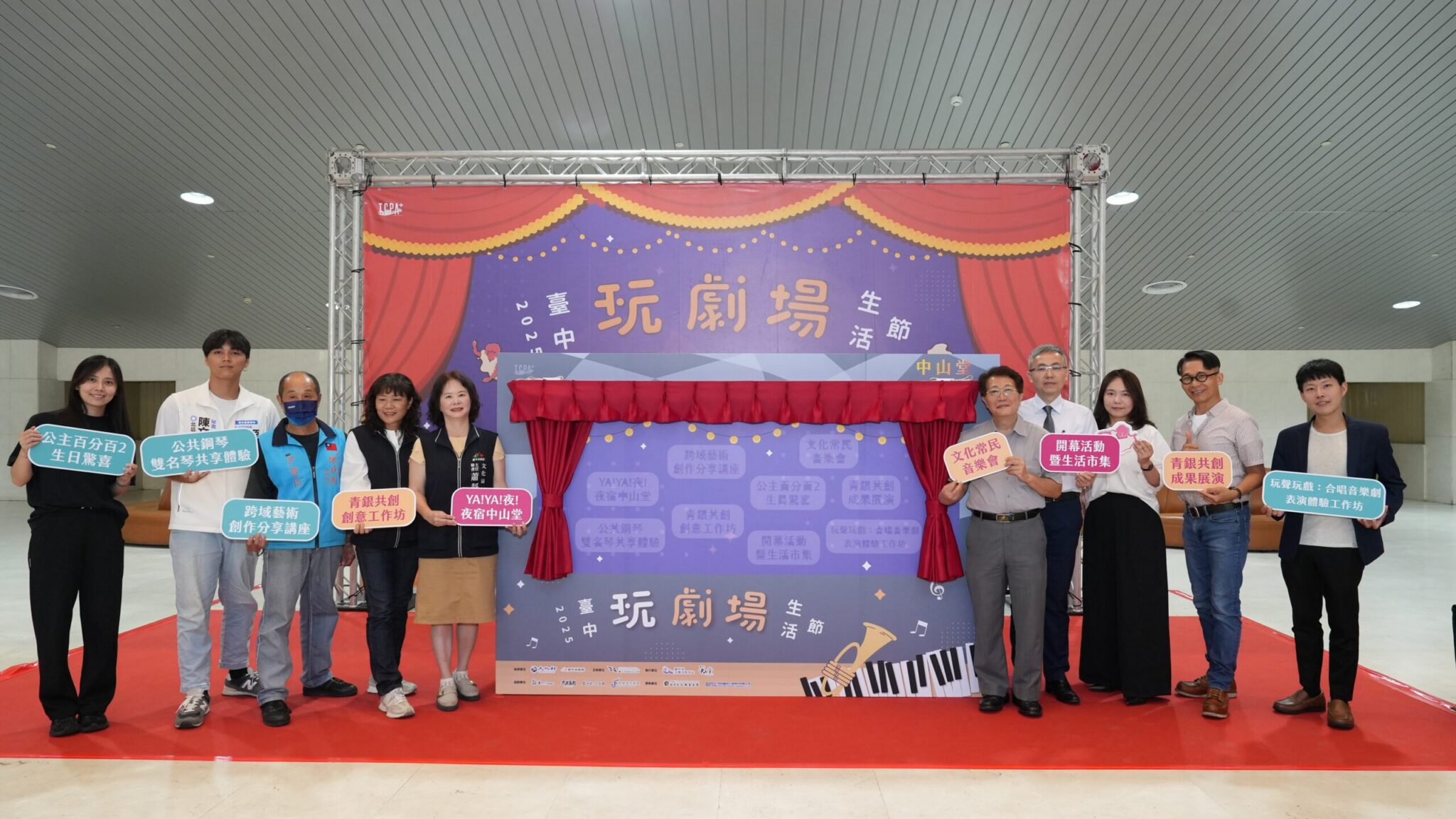 「2025台中玩劇場生活節」將於8月9日至8月24日在台中市中山堂熱鬧登場!市府文化局主任祕書蕭靜萍今(25)日在宣傳記者會表示,今年活動全面升級,除了有演出、展演,更要帶你「睡」進劇場、彈進音樂裡,從白天玩到深夜,讓表演藝術走進日常,成為盛夏最Chill的文化冒險;同時也感謝財團法人日月光文教基金會與矽品精密工業股份有限公司支持藝文推廣,攜手打造屬於台中夏日的「玩劇場」魅力。