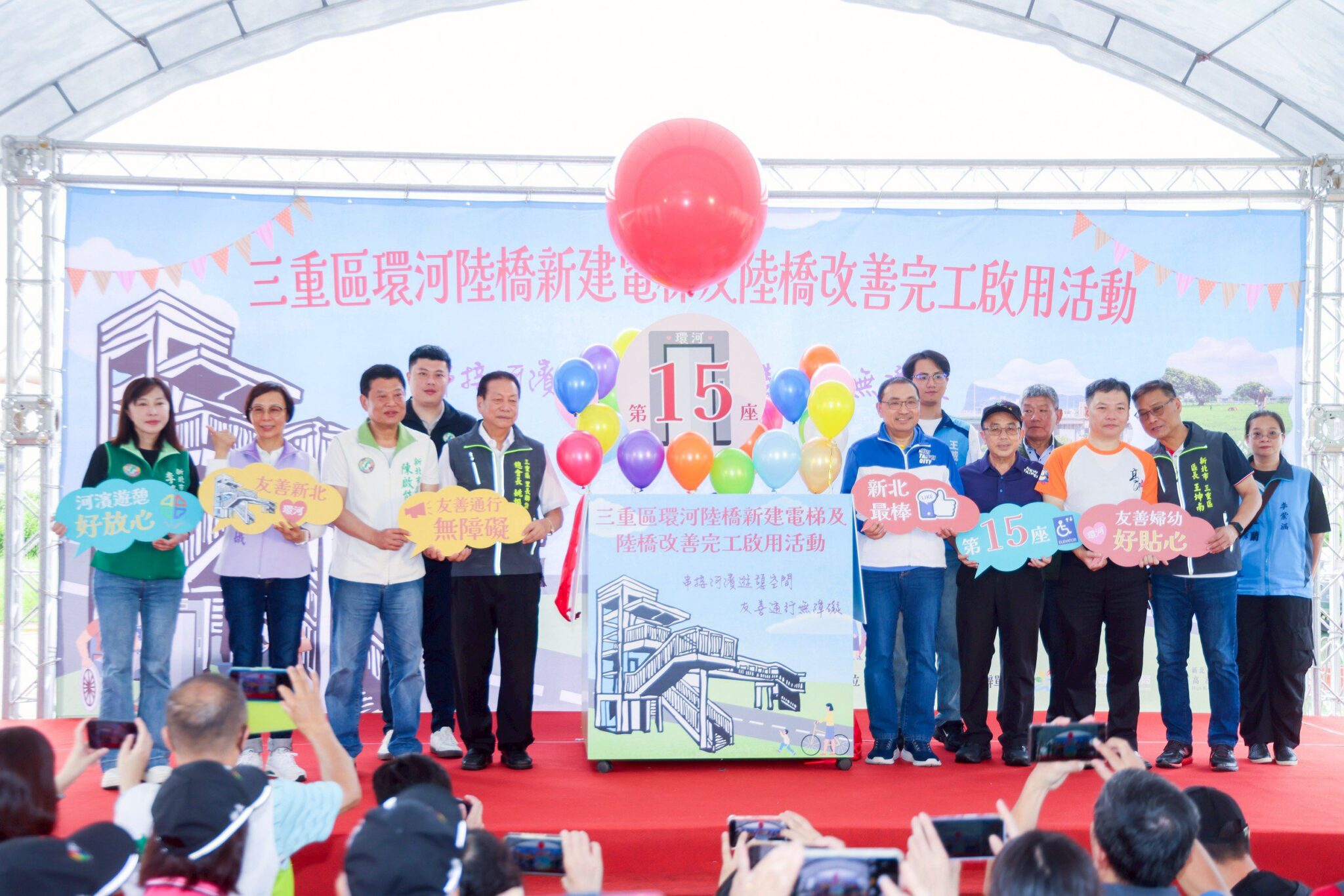 為打造河濱公園無障礙的友善環境,新北市政府持續增設水岸電梯及無障礙牽引道,市長侯友宜今(25)日出席「三重區環河陸橋新建電梯及陸橋改善完工啟用活動」,他表示,環河陸橋經優化改善後,大幅提升民眾往返堤內外的便利性,未來持續增設水岸電梯,讓新北市成為友善的親水城市。