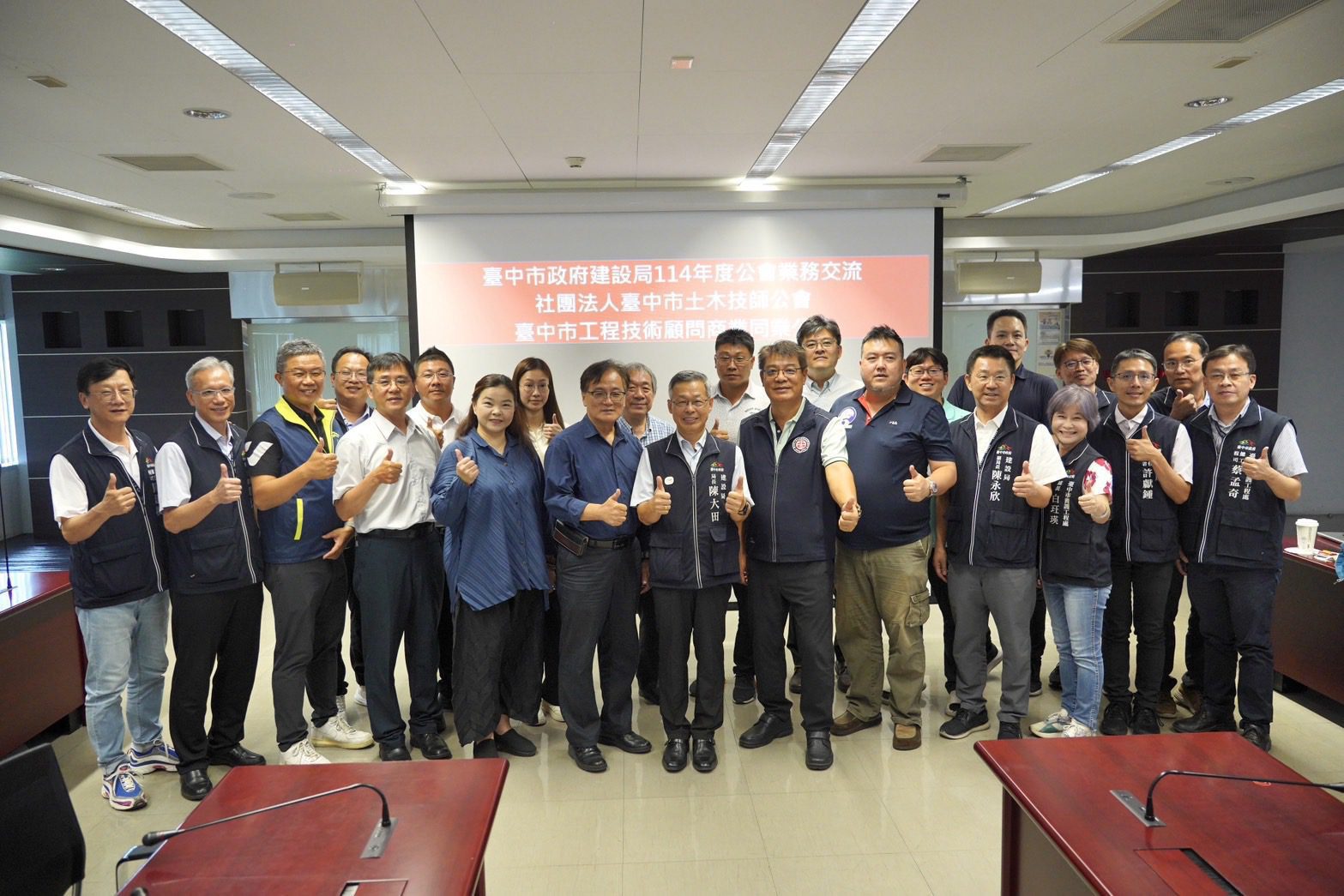 為促進專業對話、強化公私協力,台中市政府建設局秉持市長盧秀燕「讓城市幸福蛻變」的施政理念,持續深化與專業團體的交流合作,建設局於7月24日舉辦座談會,由局長陳大田親自主持,邀請社團法人台中市土木技師公會及台中市工程技術顧問商業同業公會參與,現場共有兩會理事長及幹部共26人出席,創下歷年最大規模;藉由傾聽業界建言、凝聚專業共識,進一步強化公私協力,共同為市民打造更優質的生活環境。