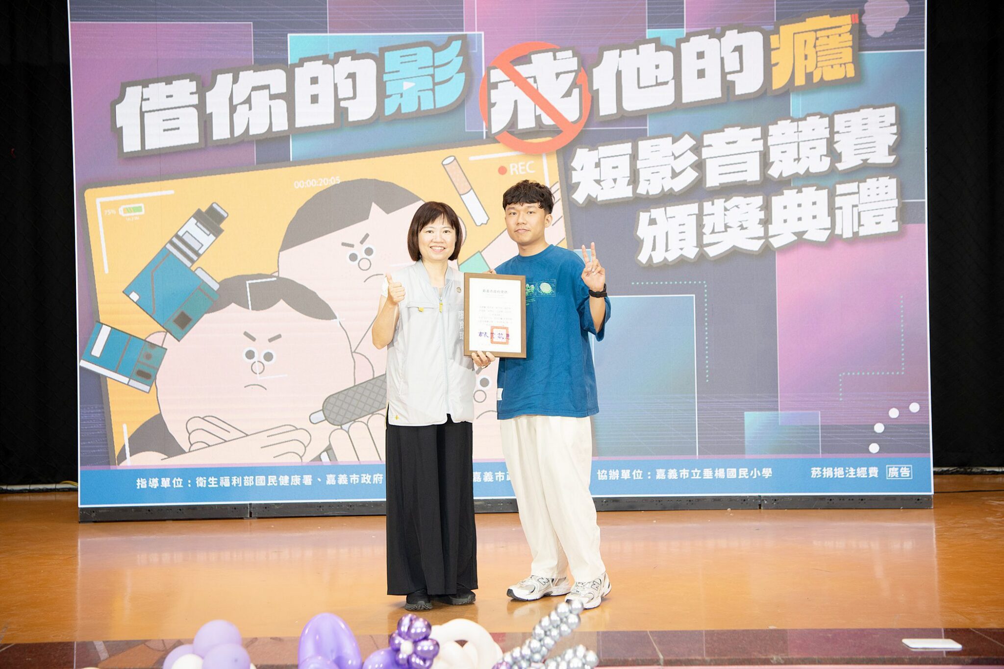 嘉義市政府衛生局今(26)日假垂楊國小舉辦「無菸嘉藝 有你+1」頒獎暨闖關摸彩活動,由副市長林瑞彥及衛生局長廖育瑋頒發「彩繪無菸嘉樂園」寫生比賽及「借你的影 戒他的癮」短影音競賽獲獎作品,藉由頒獎及展覽,希望能鼓勵更多民眾共同守護無菸環境。
