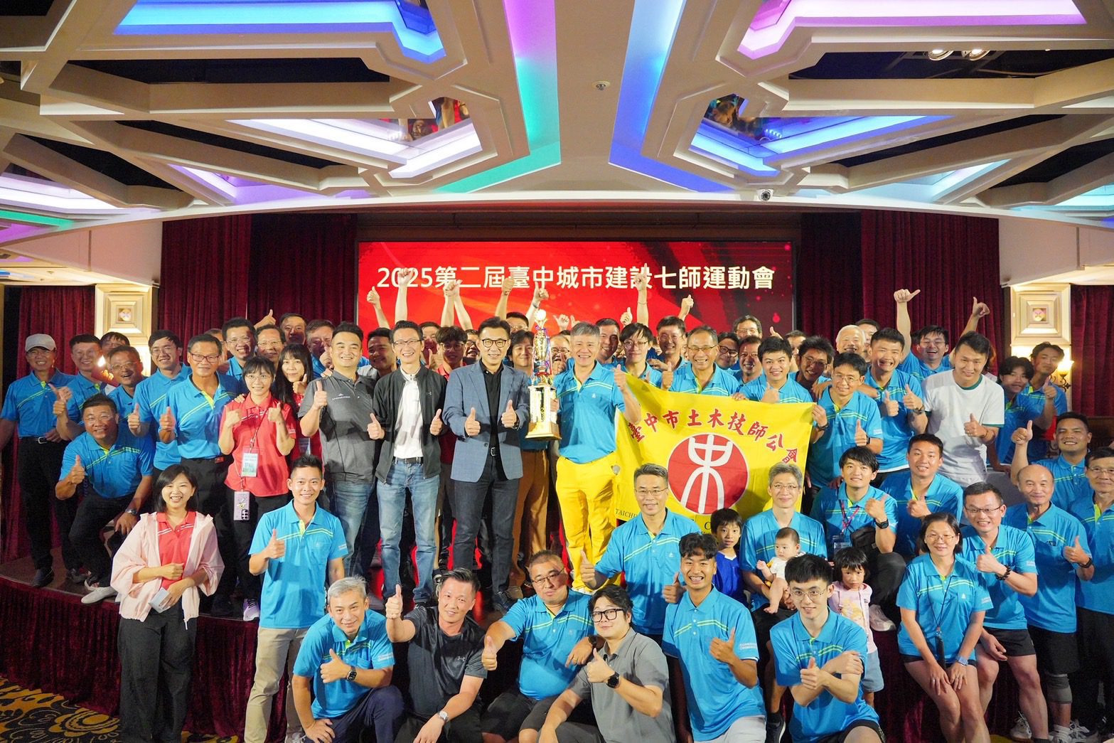 陳局長表示,此次運動會不僅展現七大公會之間的團結精神與專業能量,更是市府與專業團體交流互動的重要平台,透過競賽形式深化彼此合作默契與情誼,為未來在公共建設及城市發展上的專業協作奠定良好基礎;他也勉勵大家在繁忙工作之餘透過運動紓解壓力、強健體魄、調劑身心,讓生活與工作更加平衡和諧,並對脫穎而出的冠軍隊伍給予高度肯定,讚許其展現出努力、團隊合作與拚搏精神,值得大家學習與喝采。