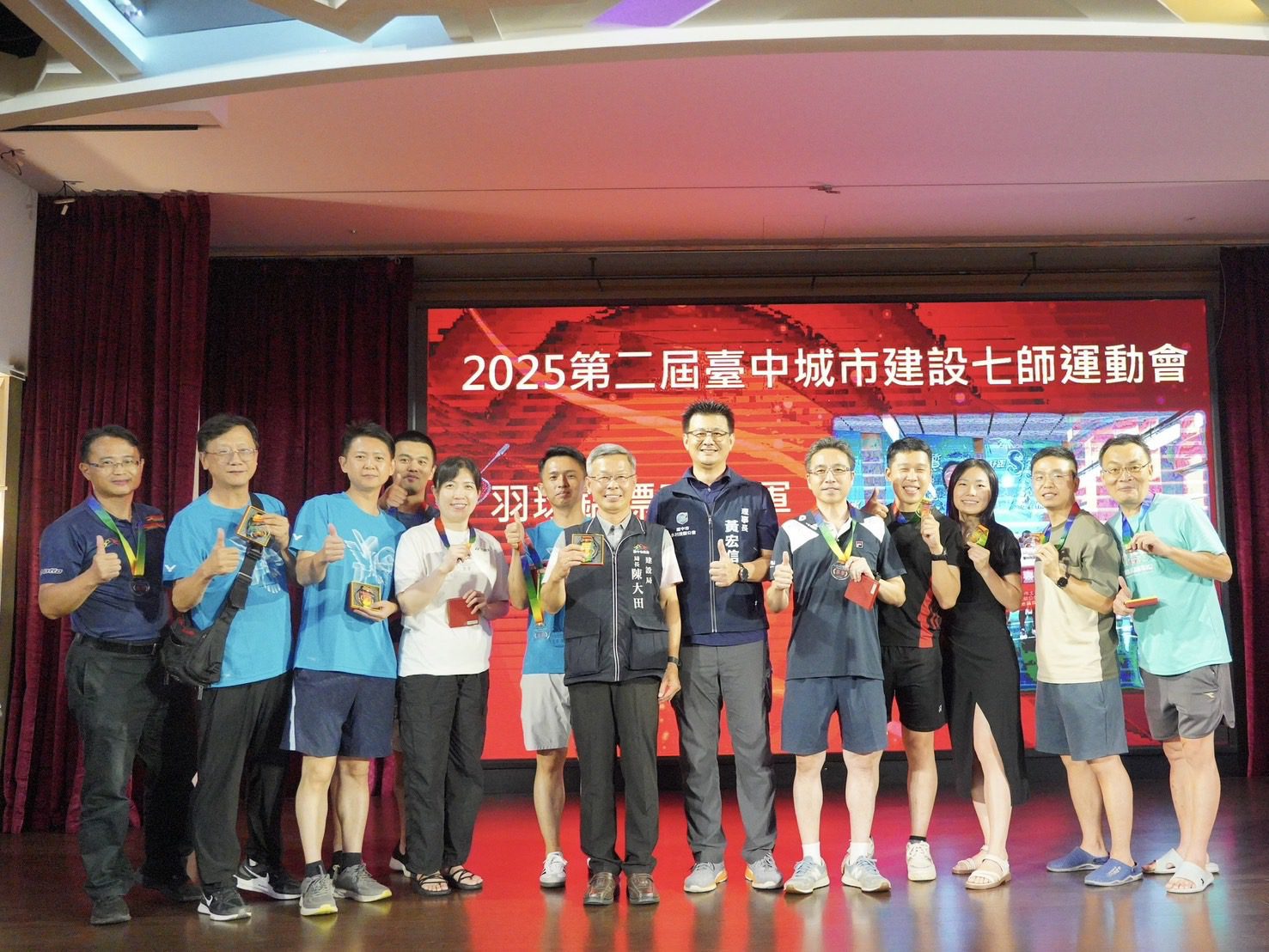 台中市長盧秀燕推動「酷城市、酷運動」政策,鼓勵市民培養健康運動習慣,市府昨(26)日與台中市土木技師公會、水土保持技師公會、建築師公會、結構工程技師公會、應用地質技師公會、水利技師公會及中華民國大地工程技師公會等七大公會,共同舉辦「七師運動會」,吸引超過700人熱情參與,展開籃球、桌球、羽毛球、撞球、保齡球及高爾夫等六項球類競賽,現場氣氛熱烈、賽事精彩,市府由建設局長陳大田代表盧市長出席並頒發獎狀,表揚優勝隊伍,展現市府與專業團體攜手促進健康生活的成果。