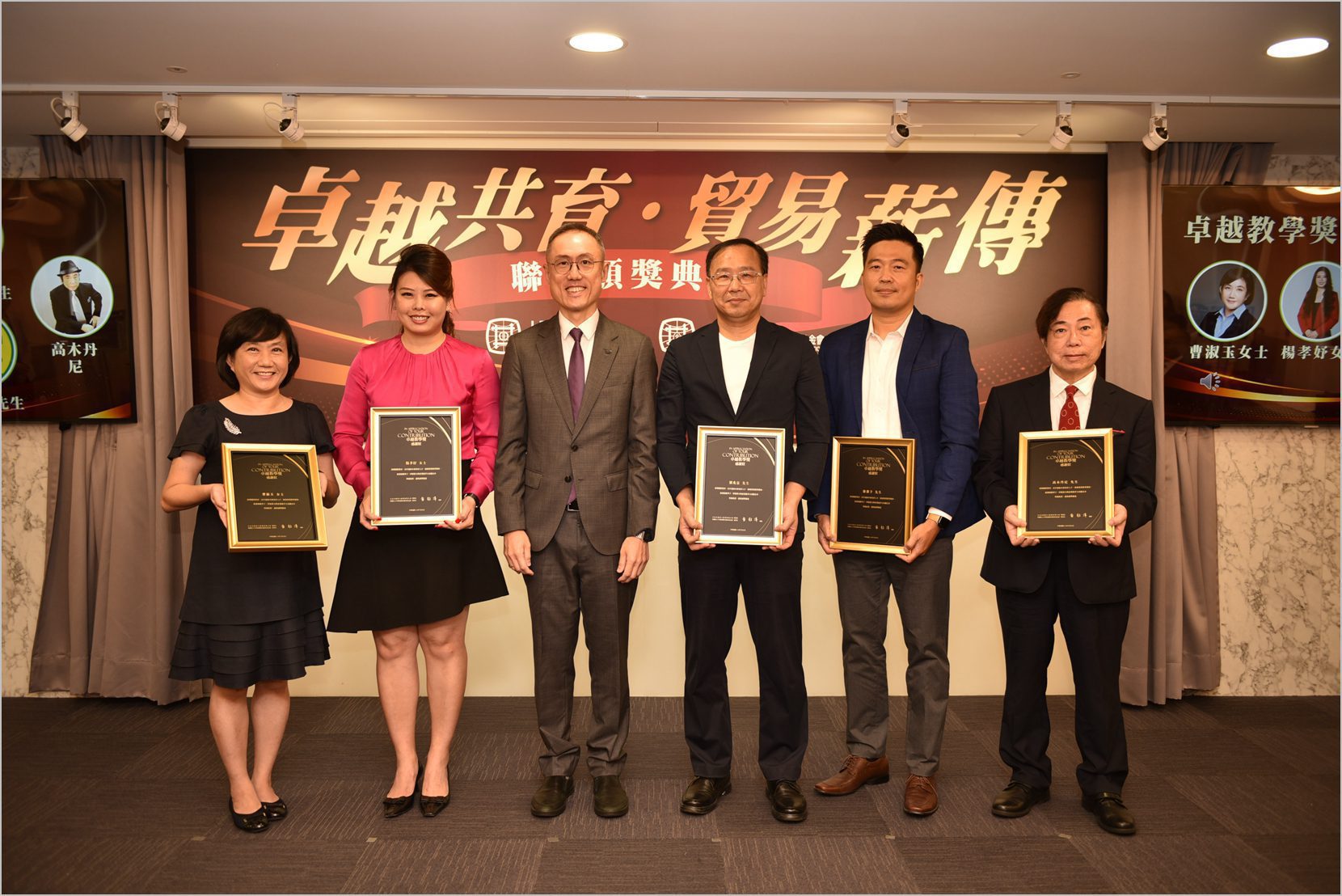 本次特別頒發「國貿教育卓越教學獎」表彰五位長期投入貿易教育的業師。包括曹淑玉、楊孝妤、劉兆富、游邵予、高木丹尼老師,他們以深厚的金融、進出口關務、日語教學等,為IEAT培訓具有即戰力的學生,深獲肯定。