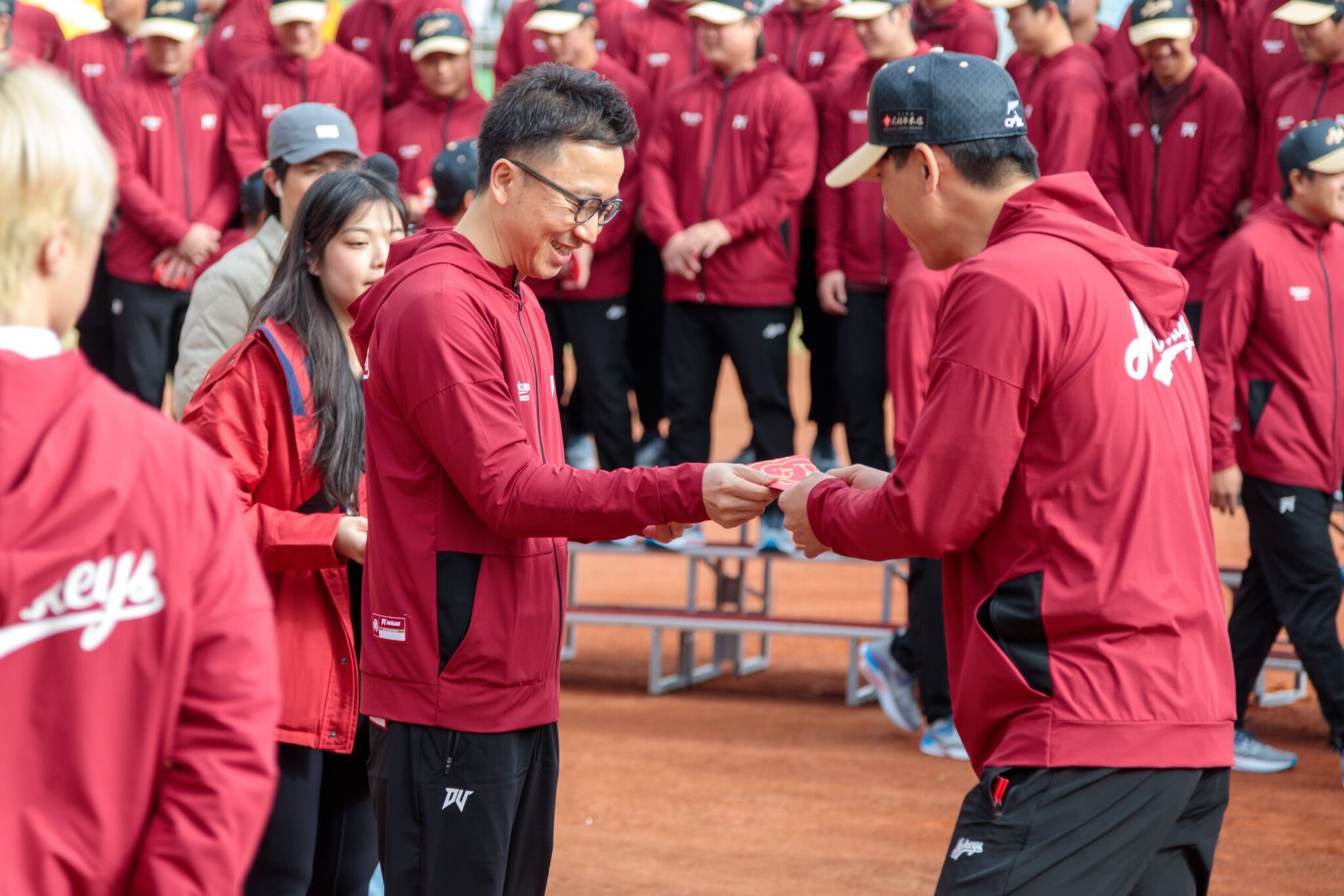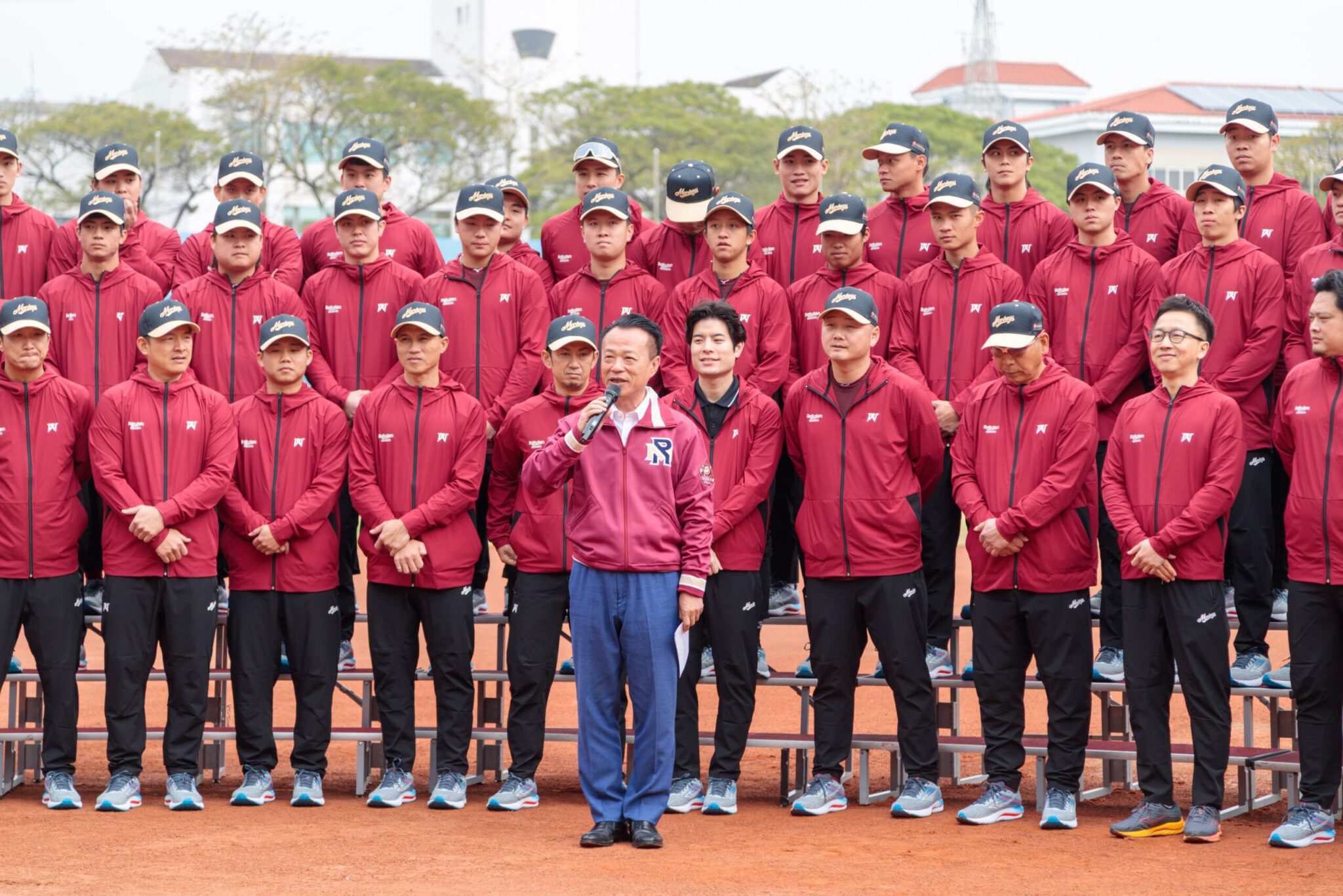 樂天桃猿隊在中華職棒中享有高人氣,今2日在嘉義縣立棒球場舉行春訓開訓儀式,嘉義縣長翁章梁出席為隊員加油打氣,更送上蛇年小紅包恭賀新年快樂。他表示,嘉義縣的宜人氣候適合作為職業球隊的訓練場地,縣府已爭取了1億3千多萬元經費,將大幅改善球場設施與環境。