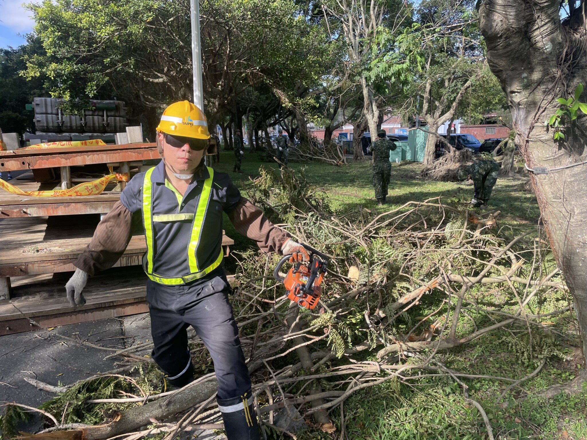 公園處圓山所莊勝豪主任表示,感謝阿典督導以及文益班長帶領工班全體員工,平日裡用心維護整個轄區內公園的樹木安全及園區清潔,每次風災輪值也都全力配合指揮出動任務。工班團隊是城市綠意衝鋒隊,他們用專業灌溉每一棵樹,用汗水守護每一片綠。當您走在公園時,看到公園處員工正冒著風雨,或是豔陽下大汗淋漓進行樹木修剪與清潔作業時,請給予他們一個微笑或一句鼓勵。這份溫暖,將成為他們持續付出的最大動力。