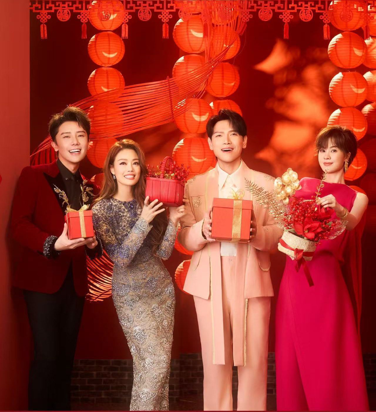 羅嘉豪(左起)容祖兒、楊宗緯和郁可唯在除夕春晚一起合唱 照片提供:超級娛樂